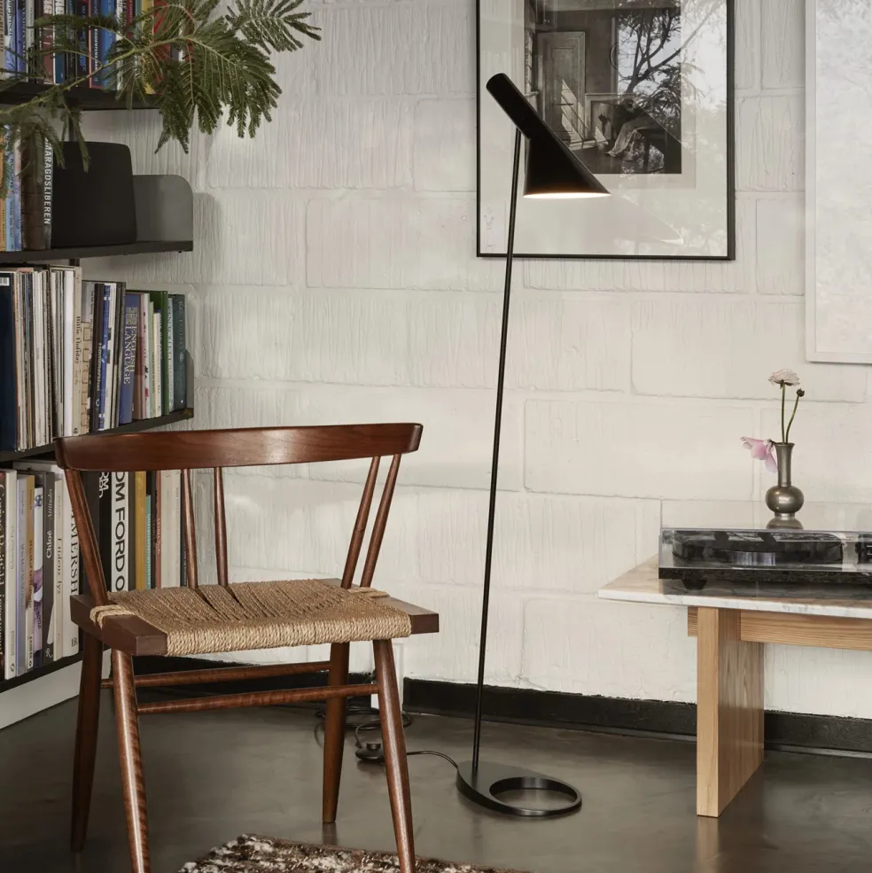 The Louis Poulsen AJ Floor Lamp, designed by Arne Jacobsen in 1957, is a design icon known for its sleek, sculptural form and precise, glare-free lighting. This elegant light creates a cozy and inviting atmosphere, making it the perfect addition to any hygge-inspired space.