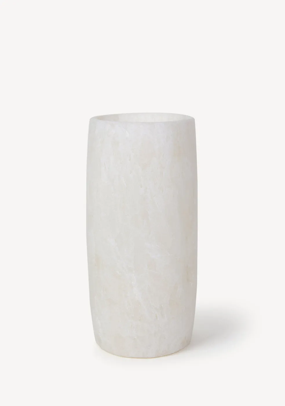Hand-carved alabaster stone candleholders in a delightful cylinder form, radiate a warm, graceful glow at any time of da via a single tea-light. Rich with earthy minerals, these stone candleholders may slightly vary in color hue, size, and texture. Some candleholders bear gray-brown sand stripes, which are remnants of the great sandstorms roaming the ancient Egyptian oasis. Handmade by Egyptian Artisans and designed in Denmark. Product of Sirocco Living.