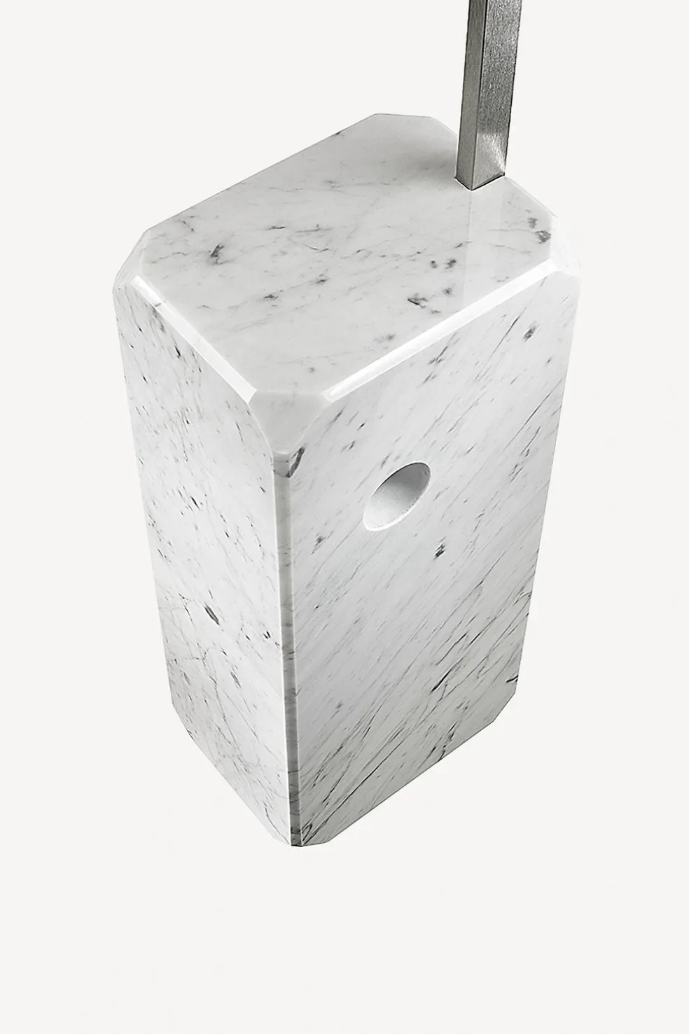 Designed with intentionality by Achille and Pier Giacomo Castiglioni, one of the unique parts of this light is that each part has a clearly defined function, including the beveled corners of the marble base (so one does not hurt themselves on sharp edges) and the hole for easier lifting with a wooden pole.