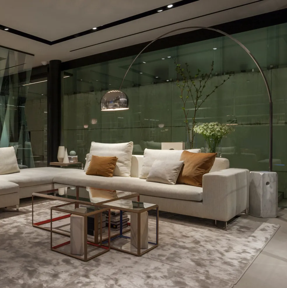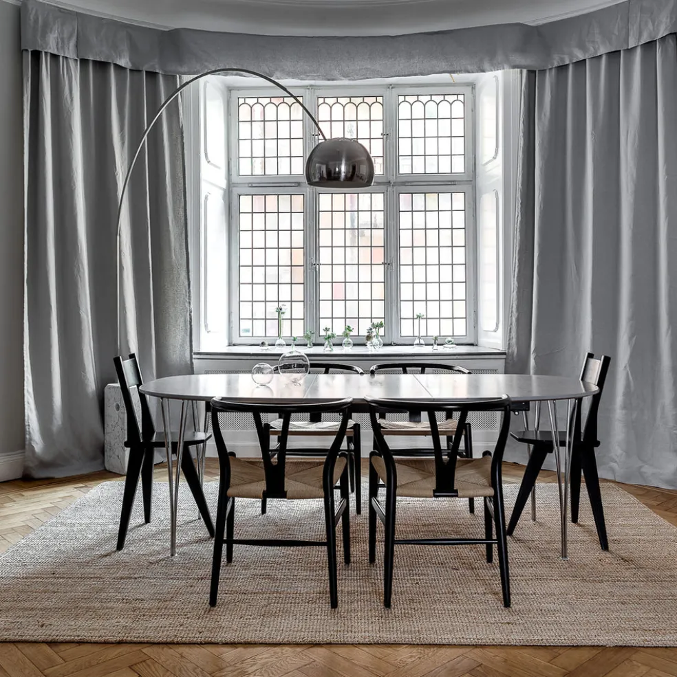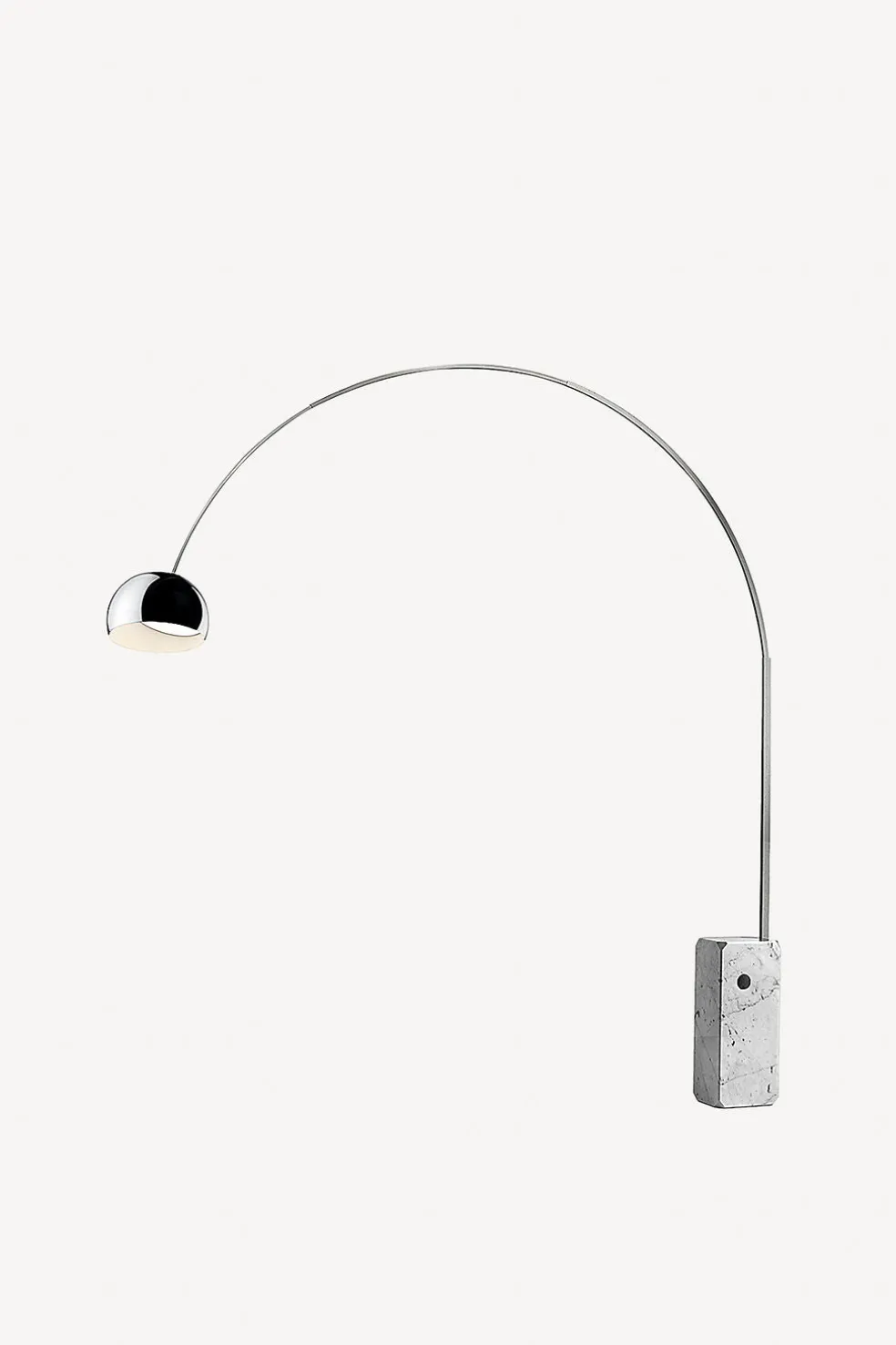Considered a design classic at this point, the Arco Light has been in production since its inception in 1962. This eye-catching design is perfect for a dining area, with the base placed in a corner of the room and the shade hanging directly over the table. The base is made of 100% genuine Carrara marble which supports a curved stainless steel adjustable stem and lamp shade at the end. The light has three extension sizes, offering the option of a lower or higher hanging shade.
