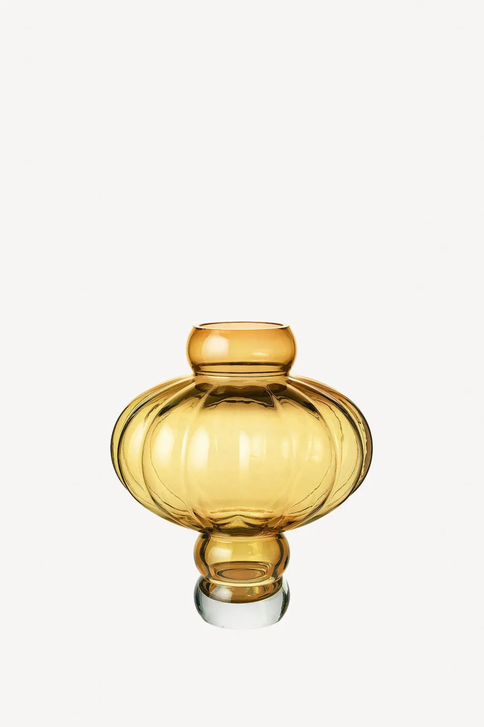 The amber Balloon Vase 03 is made from mouth blown glass in Europe, which gives its characteristic round shape and playful curves. As a unique sculpture, this vase works perfectly with or without florals.