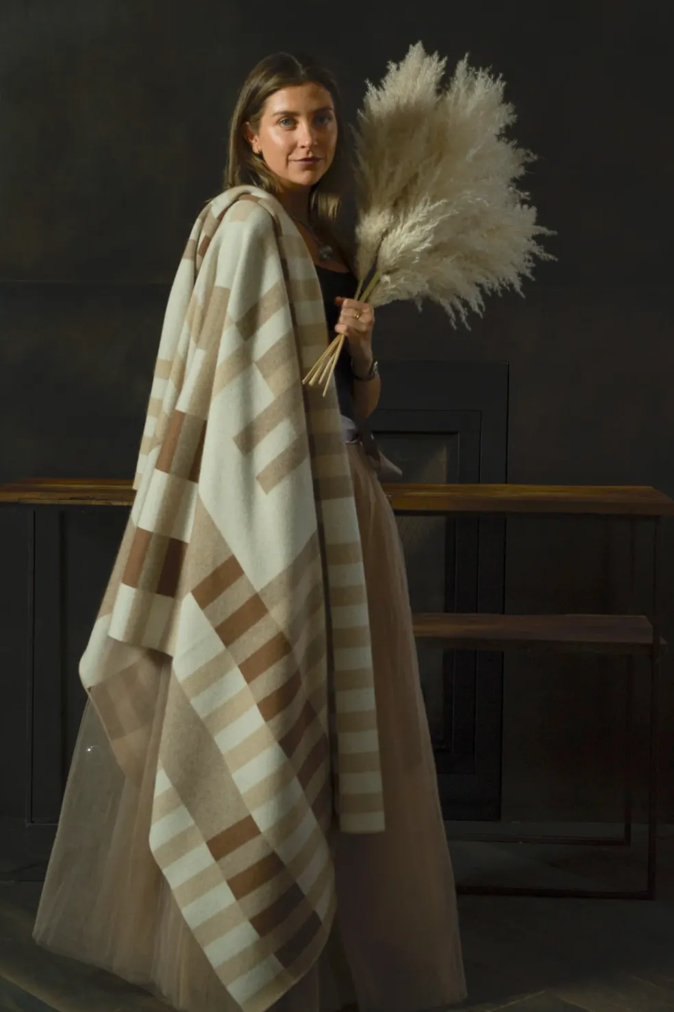 Luxuriously soft throw blanket, crafted from precious Mongolian cashmere goat fiber, is warm, breathable, and beautiful. Created by Hangai Mountain Textiles in Mongolia, these exquisite cashmere throws in a geometrical bauhaus design compliment any sitting area with elegance and coziness.