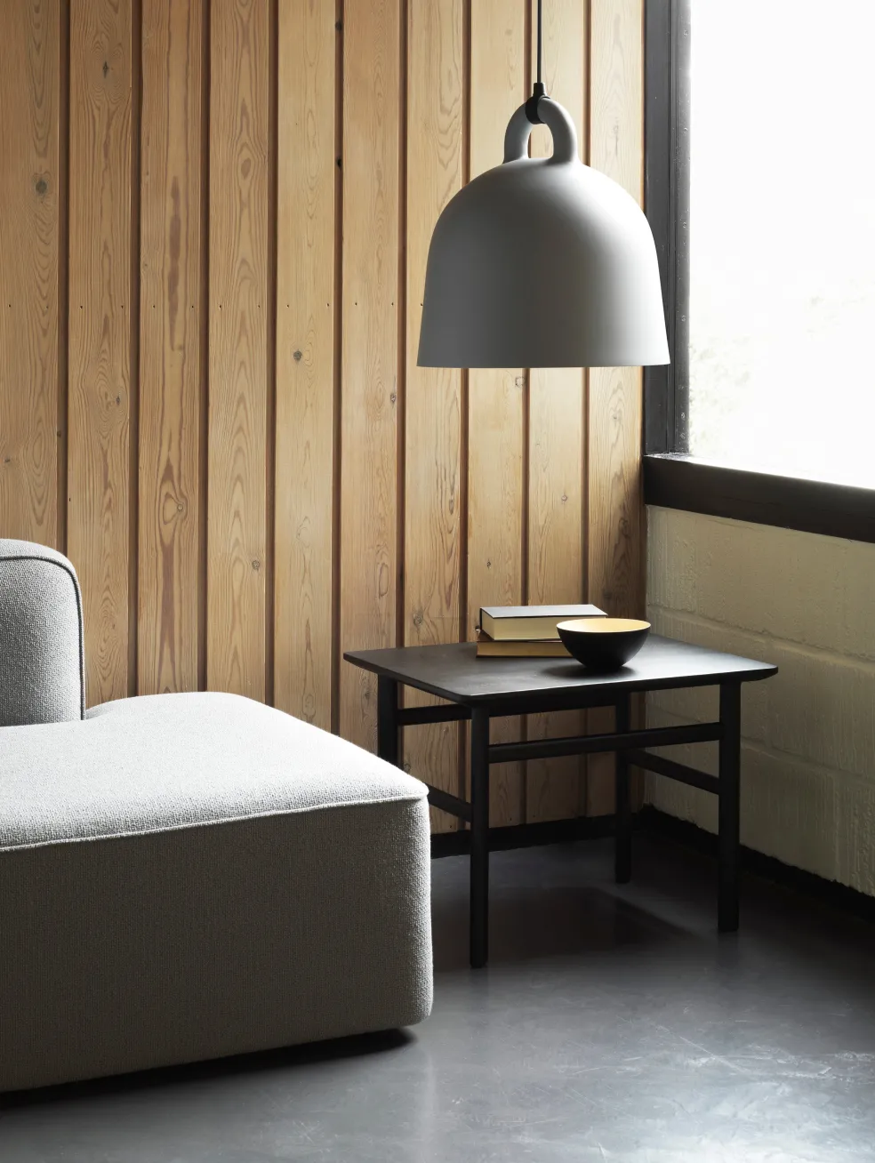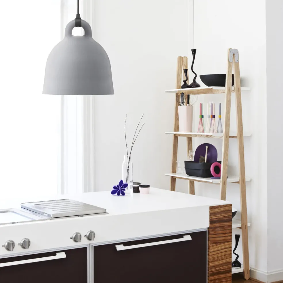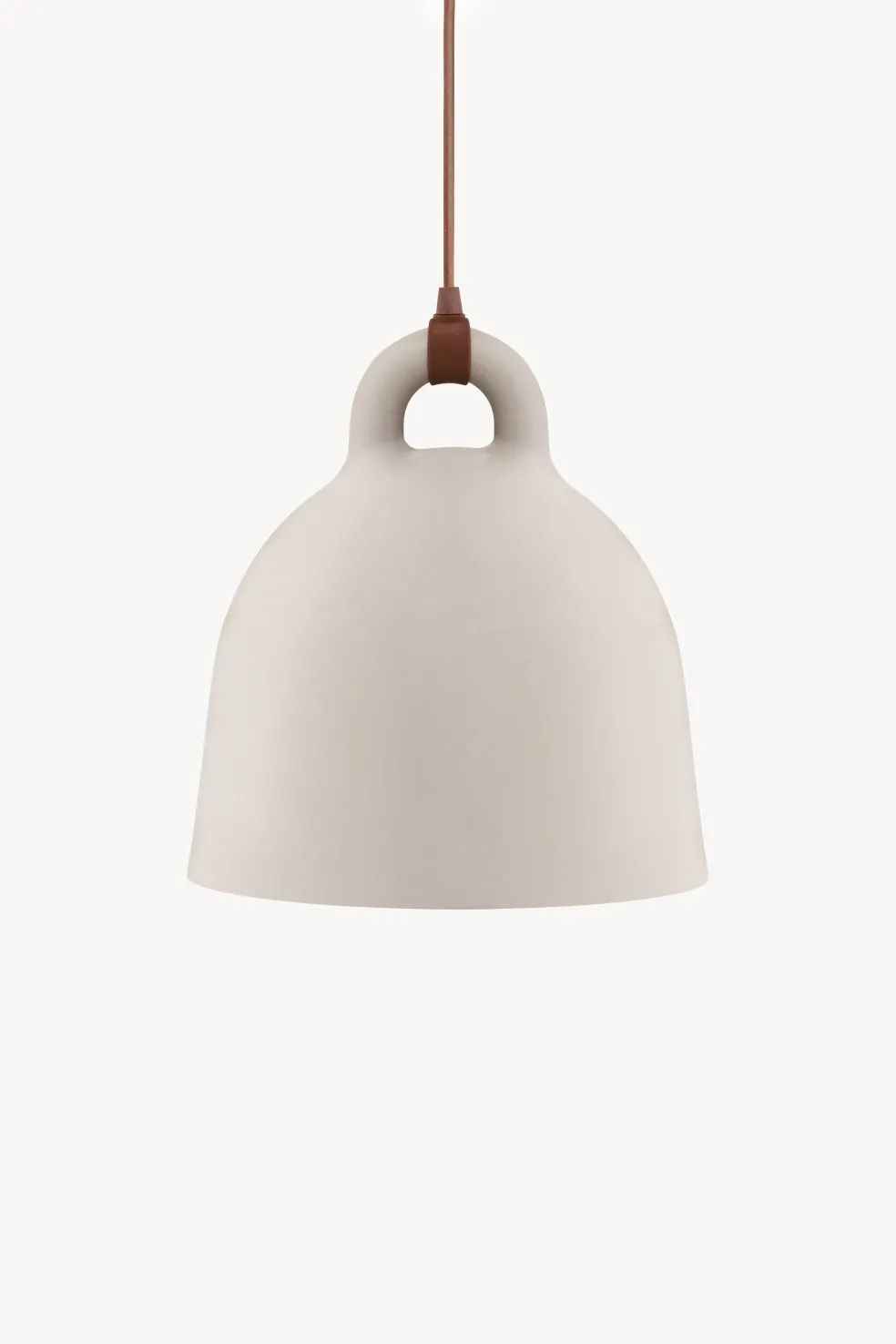 The Bell Lamp, by Normann Copenhagen, is a playfully modern take on the classic cow bell shape. Group together a mix of colors and sizes for a modern visual effect, use a large Bell Lamp as an accent pendant over the dinner table, or hang pairs of Bell Lamps for decorative kitchen lighting. Bell Lamps include corresponding textile cords and aluminum canopies, allowing them to match your unique interior design whether it be simple or bold. Low-energy 9 Watt bulbs are recommended.