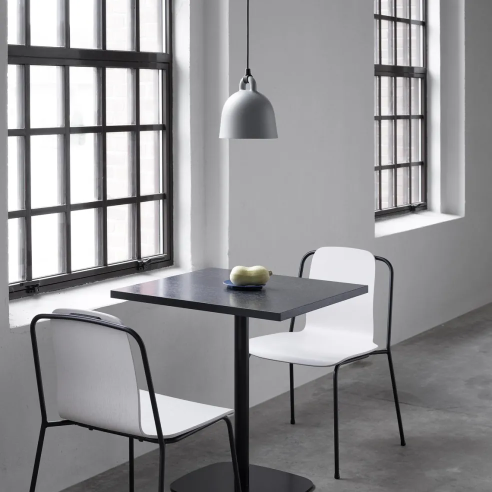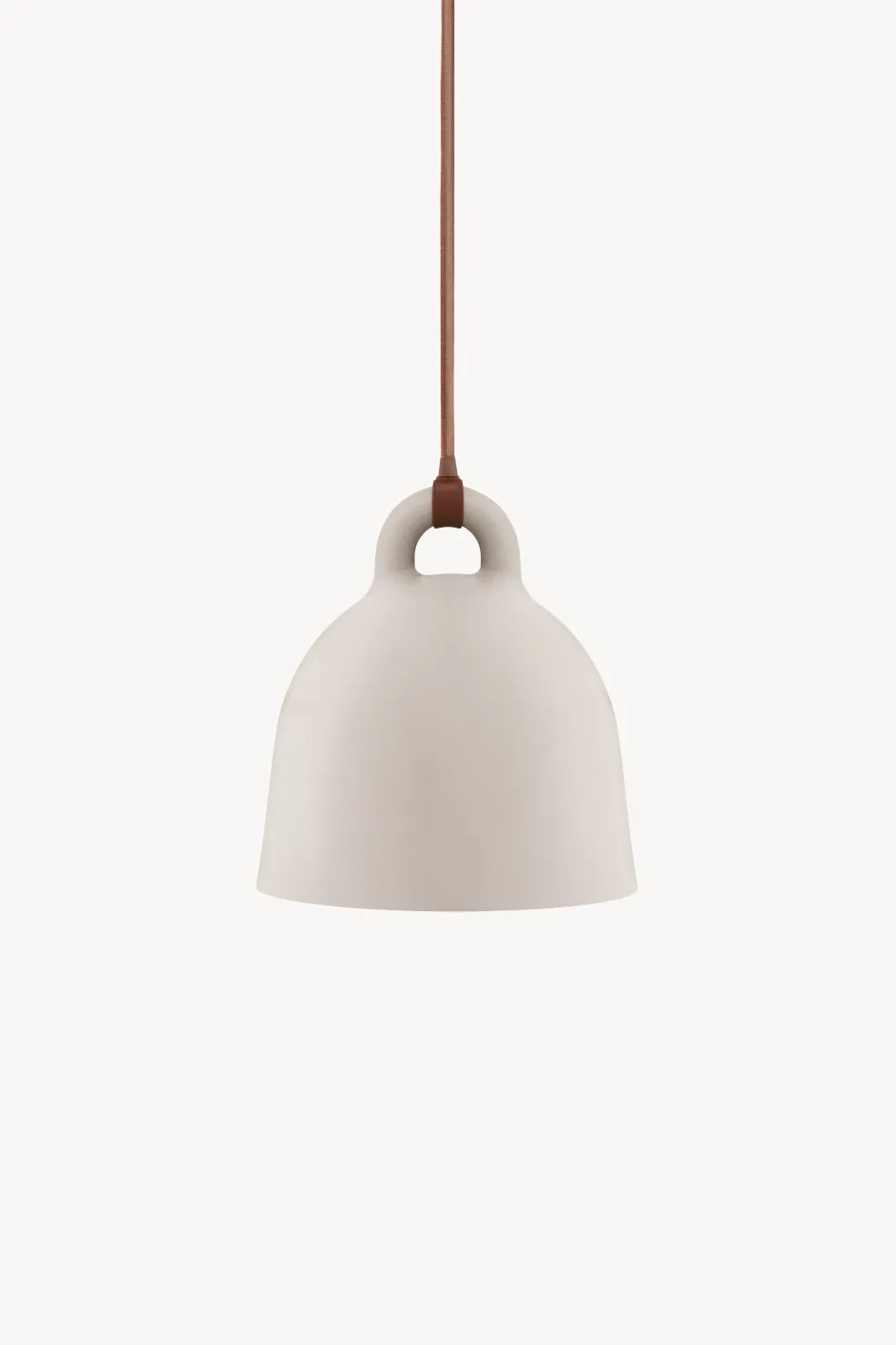 The Bell Lamp, by Normann Copenhagen, is a playfully modern take on the classic cow bell shape. Group together a mix of colors and sizes for a modern visual effect, use a large Bell Lamp as an accent pendant over the dinner table, or hang pairs of Bell Lamps for decorative kitchen lighting. Bell Lamps include corresponding textile cords and aluminum canopies, allowing them to match your unique interior design whether it be simple or bold. Low-energy 9 Watt bulbs are recommended.