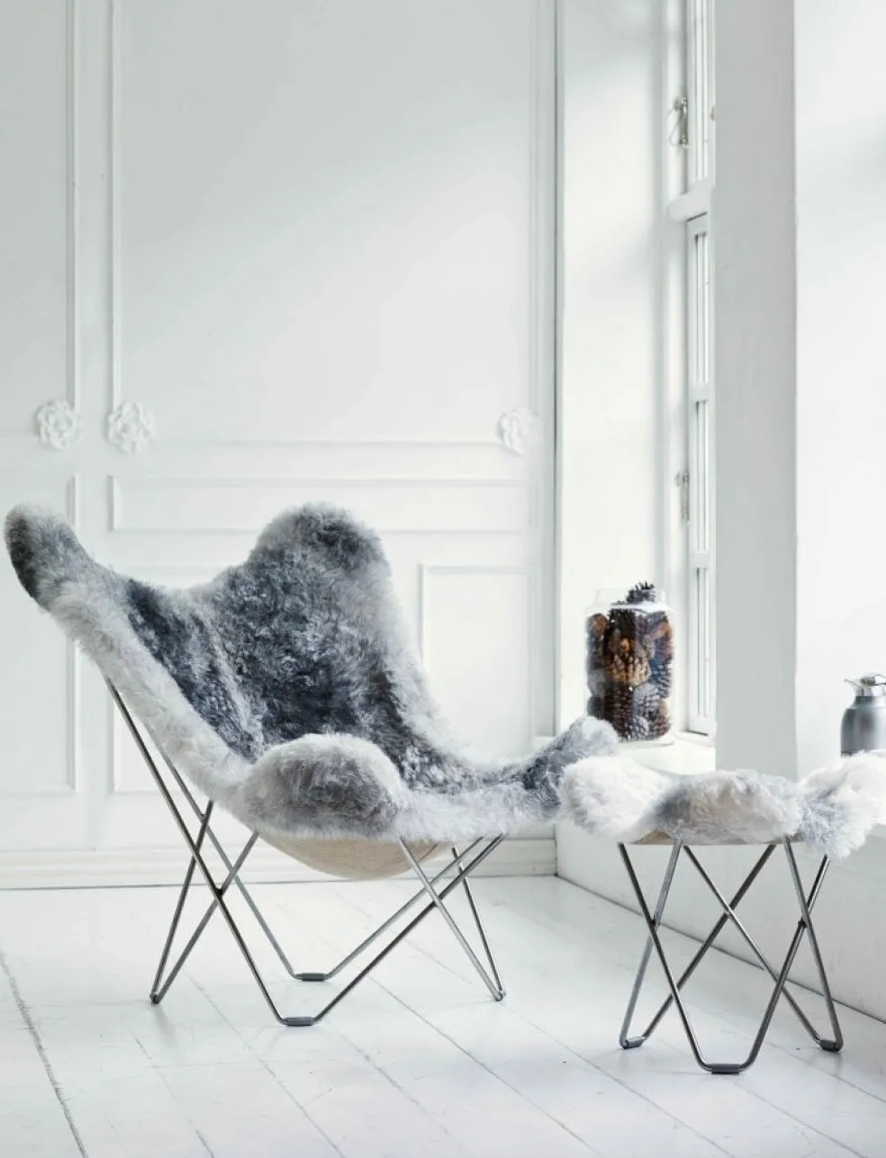 Also see the Butterfly Chair in Long White Sheepskin or Leather.