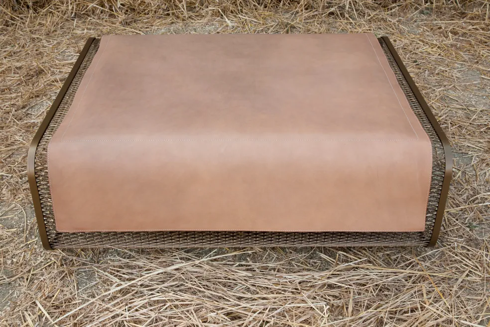 This unique table is artfully crafted in steel mesh with a bronze finish and a leather cover, similar to the saddle of a horse. Use this piece as a coffee table or extra seating in your living or family room area, depending on what your needs may be. The seat cover is available in many fun leather colors, and allows room for you to be creative with a neutral brown tone or a statement pop of red!