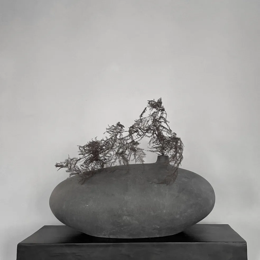 The Fat Submarine Vase, a piece in a 101 Copenhagen series of artfully curated, sculptural ceramic objects based on archetypal geometry, is timelessly gorgeous with its asymmetrically curved silhouette.