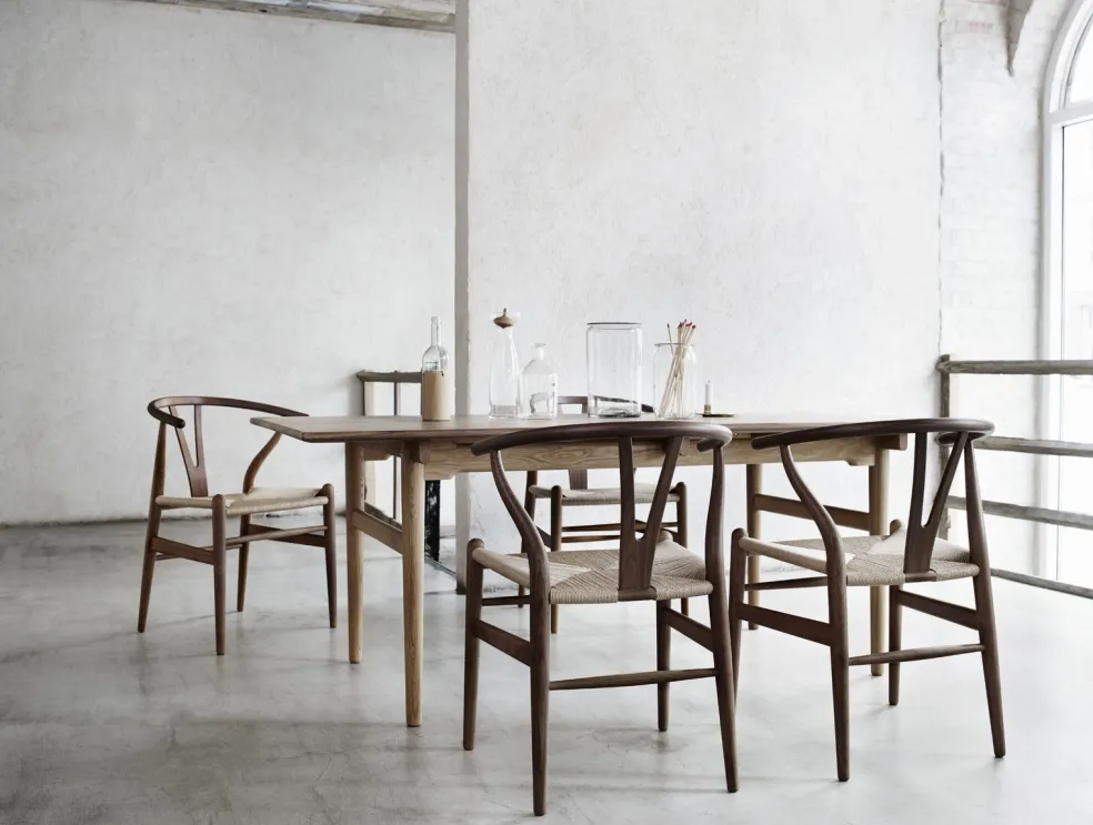 When designing the Wishbone Chair in 1949, Wegner chose to combine the back and armrest into a single piece in order to create stability and comfortable support of the lower back. More than 100 steps are required to manufacture each chair, most of which are carried out by skilled artisans by hand.