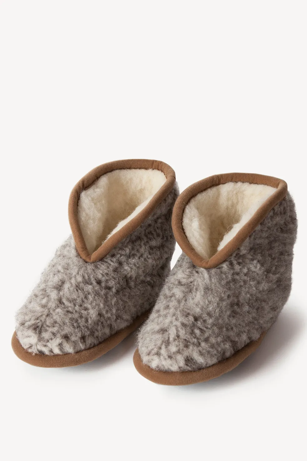 A must have hygge accessory. 100% merino wool slippers with a fleecy warm ankle cuff in a luxurious gray. Cozy, breathable, and functional with rubber gripped soles, these slippers can be worn with the cuff pulled up or rolled down. Handcrafted in Lithuania.