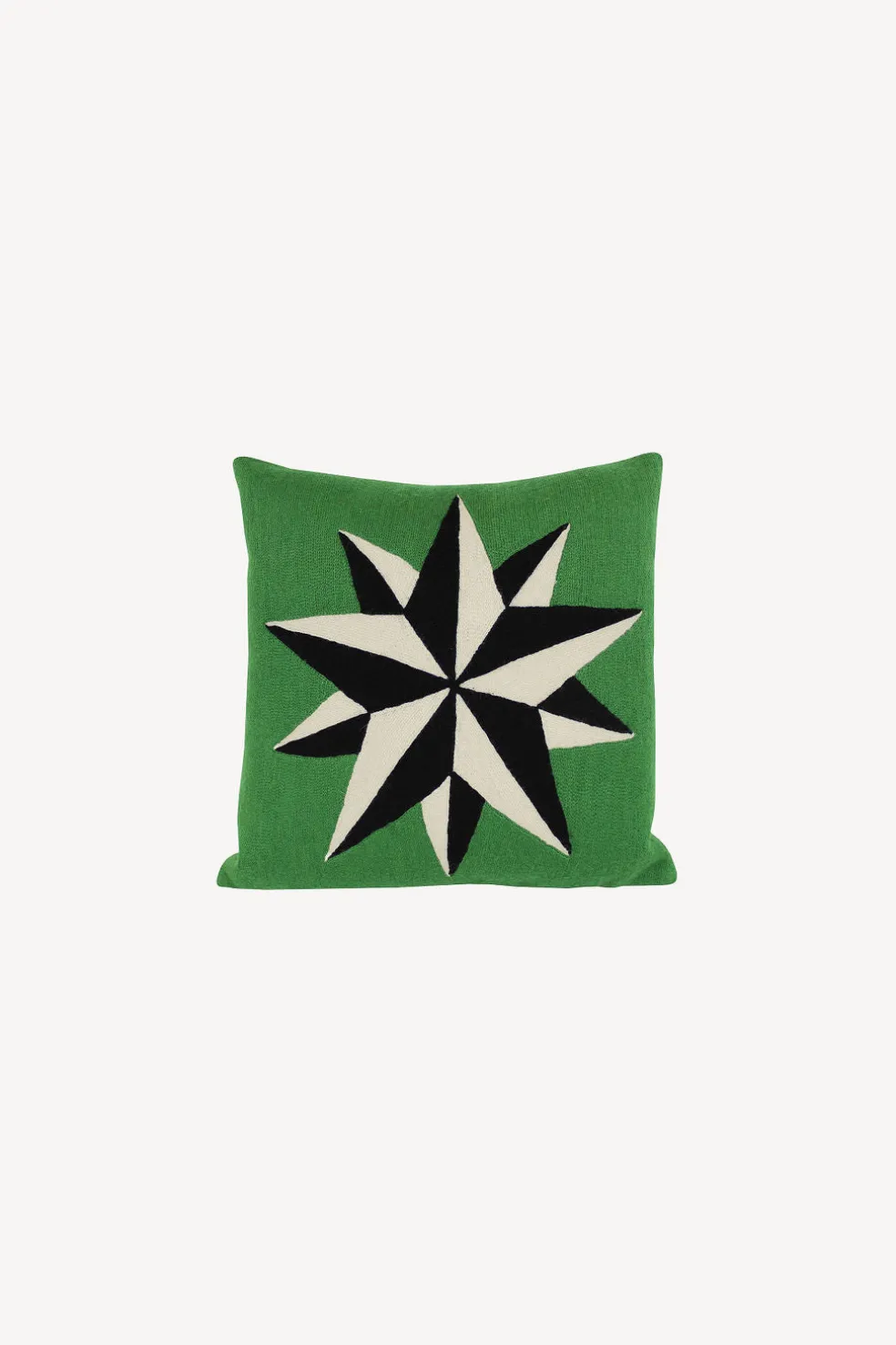 The Estelle hand embroidered cushion in chain stitch with an eye-catching star design. Each piece is a unique creation with the embroidery, weaving, dyeing handcrafted by skilled artisans in northern India and Nepal.