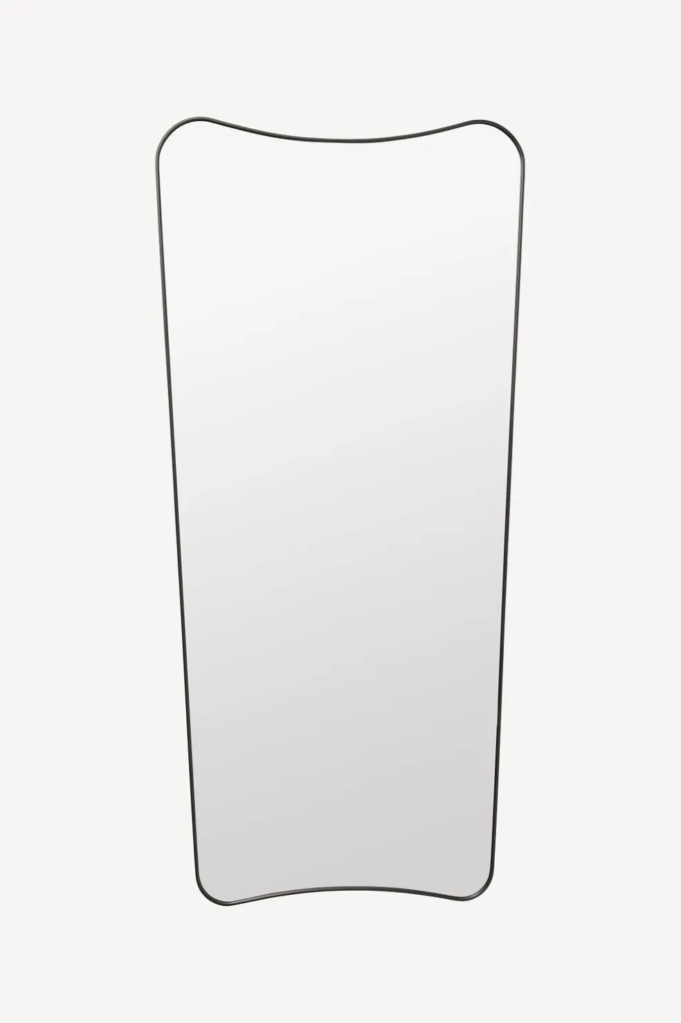 Designed by the infamous Italian architect and designer Gio Ponti in 1933, this mirror is the epitome of a timeless, heirloom piece. It is striking, iconic and elegant. Available in full or half length and a brass or black brass finish. The full length mirror may act as a floor mirror as well, and both may be hung on the wall. Mirrors are a crucial design element of any space, able to transform and expand a room.