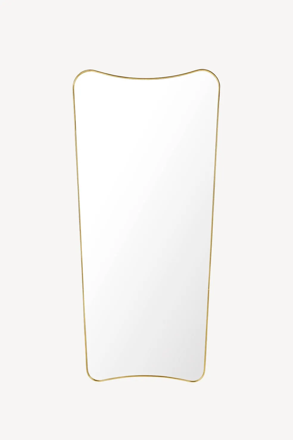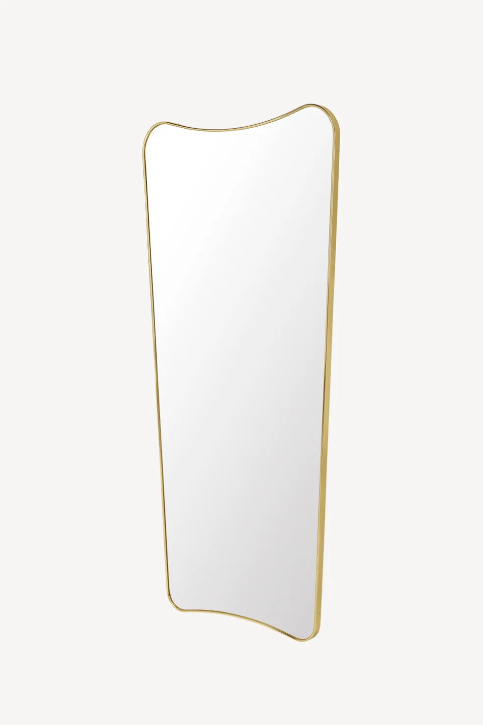 Designed by the infamous Italian architect and designer Gio Ponti in 1933, this mirror is the epitome of a timeless, heirloom piece. It is striking, iconic and elegant. Available in full or half length and a brass or black brass finish. The full length mirror may act as a floor mirror as well, and both may be hung on the wall. Mirrors are a crucial design element of any space, able to transform and expand a room.