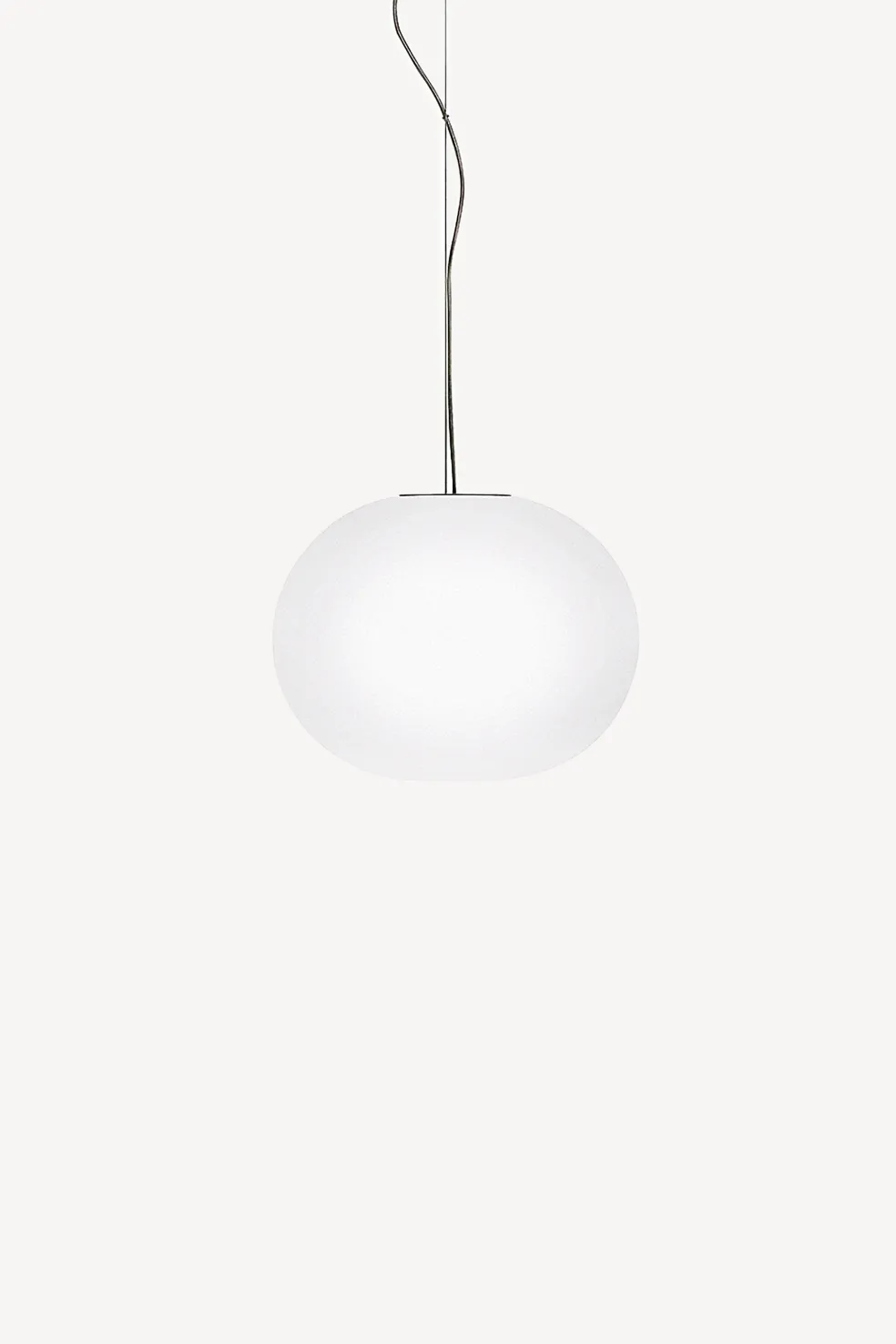 This suspension pendant light invokes the radiant calm of a full moon. The Glo-Ball’s light diffuser consists of an acid-etched, hand-blown, flashed opaline glass. Install over a dining table, kitchen island or bedside tables for a delicate yet vibrant diffused light.