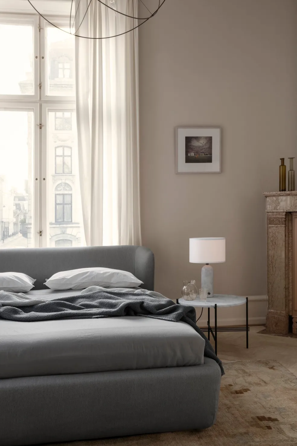Husband and wife design duo Space Copenhagen based the Gravity collection on the concept of balance between being anchored down with the heavy base and pulled up with an airy shade.