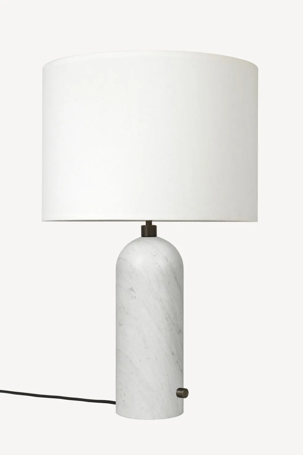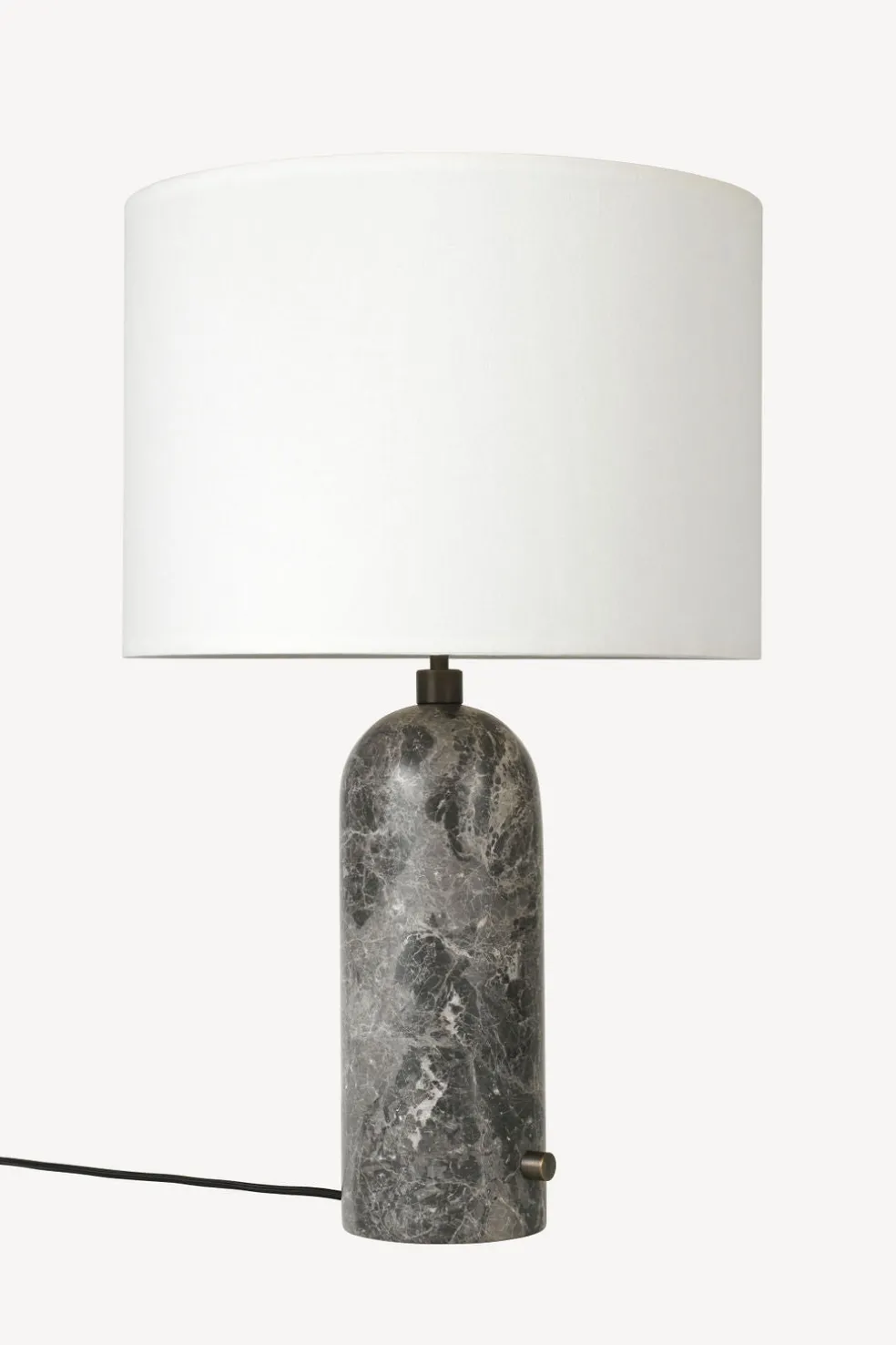 The definition of a statement piece, this unique table lamp brings warmth to any side table or desk. Marble is a beautiful natural material which automatically enhances the feel of any home. Plus, the natural marbling in this table lamp will be slightly different every time, making this design all the more fun. Providing a warm glow, the Gravity table lamp is available in a white, grey or black marble or in blackened steel with a canvas or white shade.