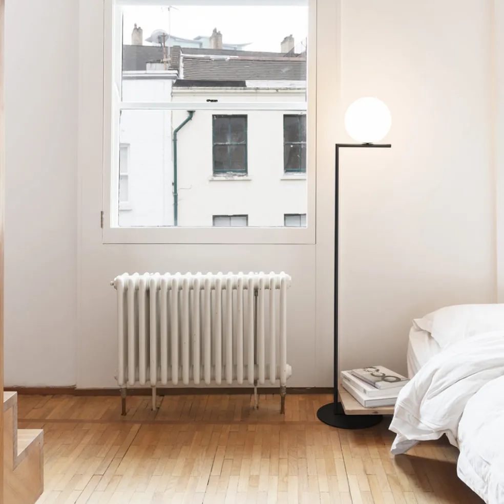IC Lights designer, Michael Anastassiades, found inspiration in contact jugglers, who gracefully spin orbs on their bodies. Anastassiades conjures this mesmerizing motion with a collection of lamps in which the luminous blown-glass diffuser artfully projects from a steel frame.