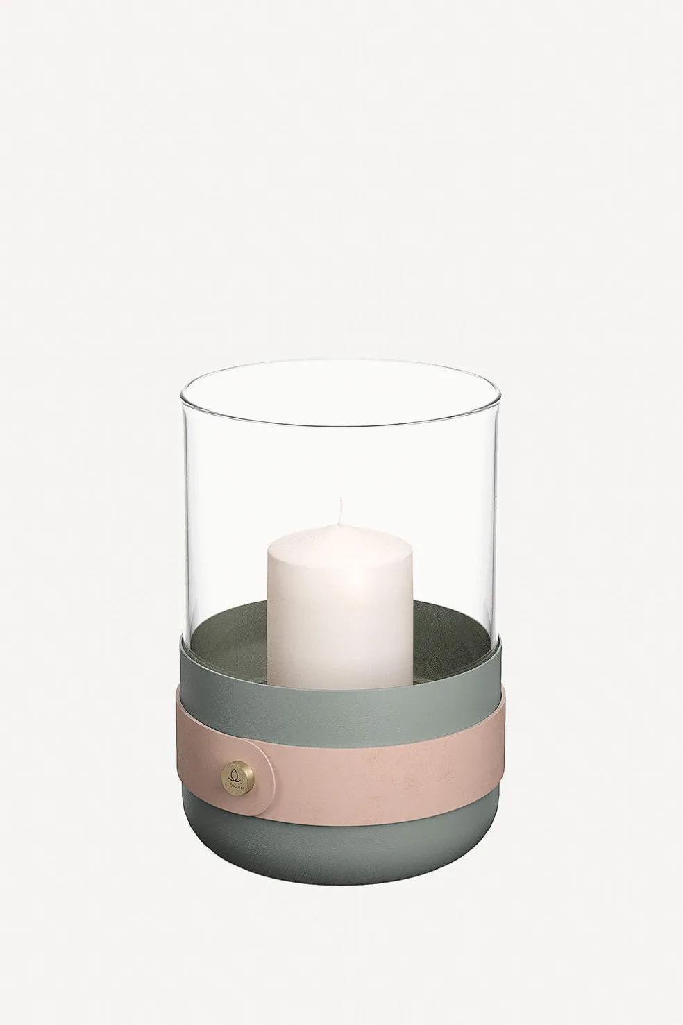 The Emma lantern is artfully crafted from airy green powder-coated steel, as well as natural leather, hand-blown glass, and solid brass detailing. Available in a variety of luxurious color finishes. Designed in Sweden by Emma Olbers for Eldvarm.