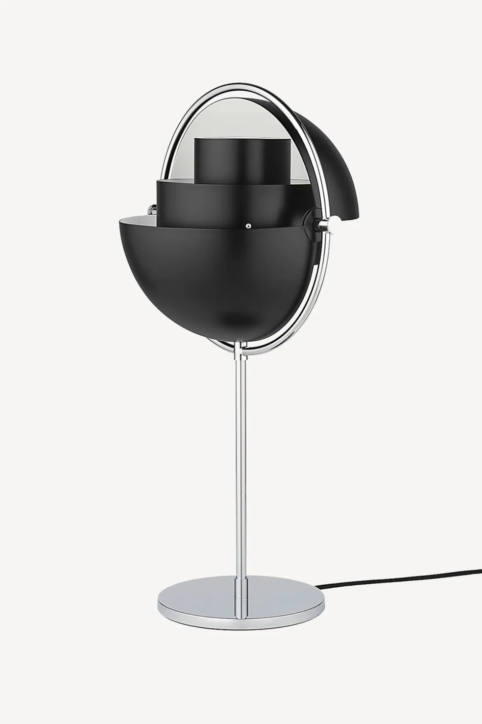A lighting design that has withstood the test of time, the Multi-Light is a very hyggelig product. With the ability to shift direction of the light by moving the top shades up or down, this is a Danish design classic. With its sleek design it is also the focal point of any room, playful and customizable. It is available in many shade finishes including shiny or black brass. Perfect for a side table in a living room or even on bedside tables.