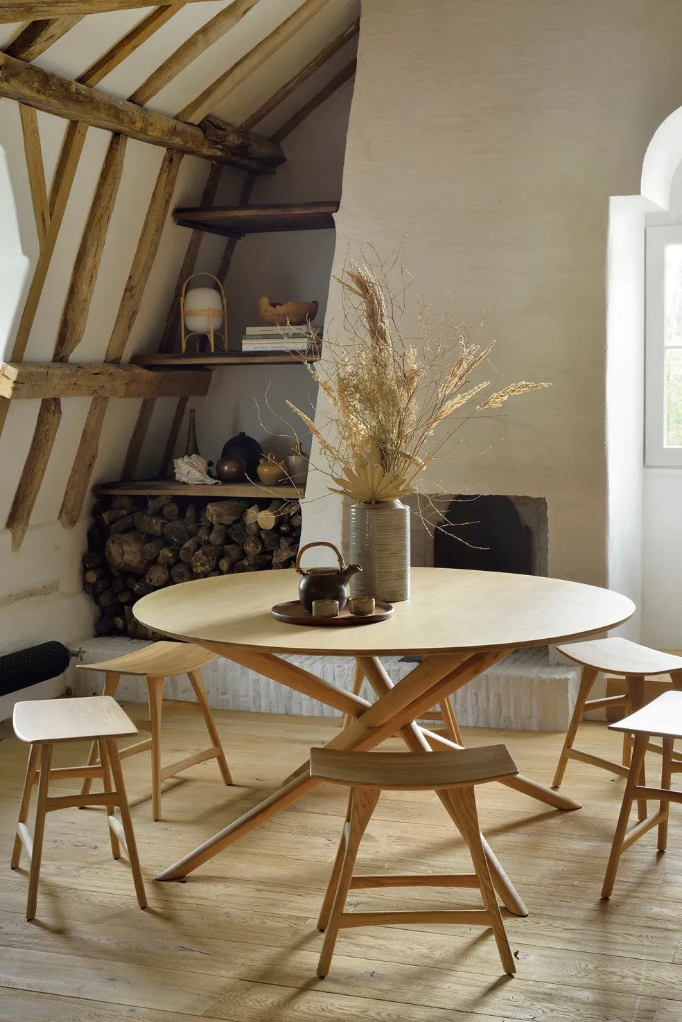 Designed by Alain van Havre, the Mikado collection is recognized by its sculptural character. The artistic appearance is the result of a quest for balance between functionality, stability and aesthetic. The round shape of this dining table creates harmony and connection between those who will be using it, and can seat up to 6 comfortably.