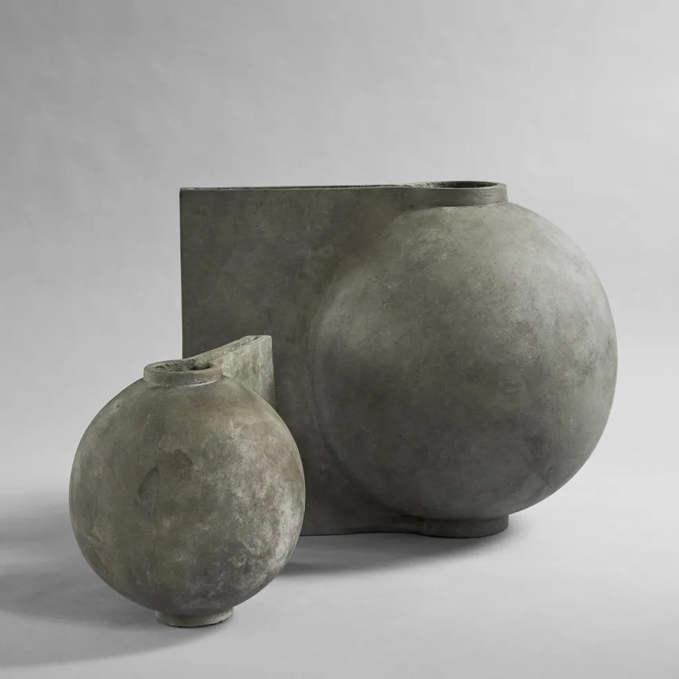 The Offset Vase, handcrafted in dark gray fiber concrete, challenges the traditional concept of a vase by drastically and distortedly changing in appearance when viewed at various angles. From one side it imitates the silhouette of a traditional vase and from the other, a sculptural object.