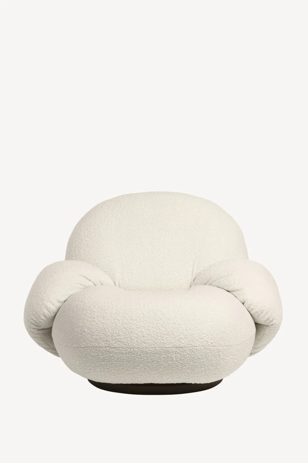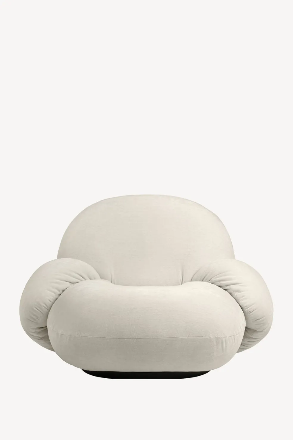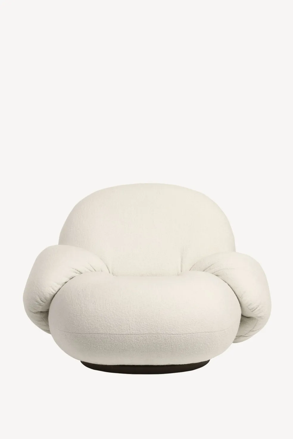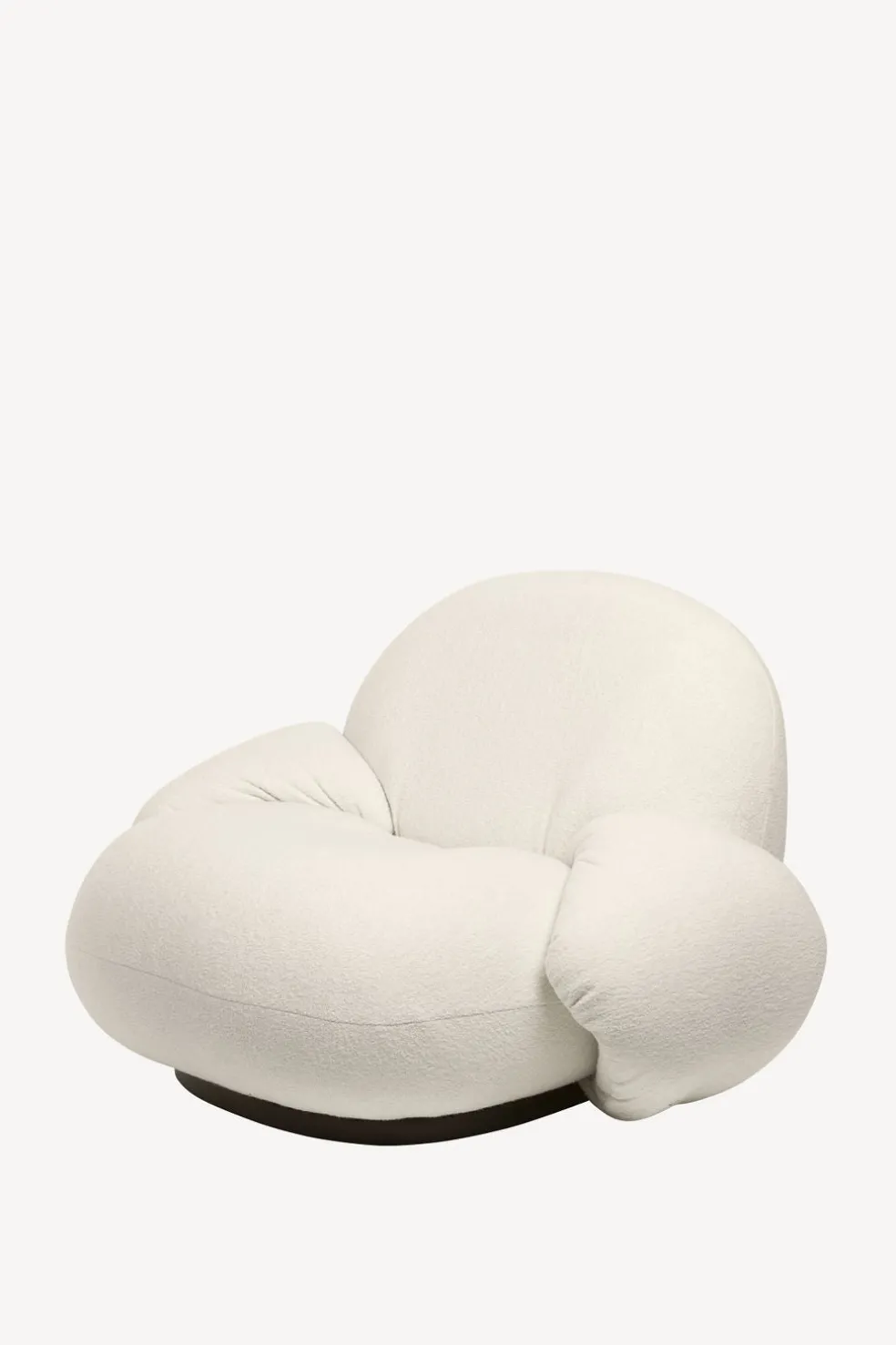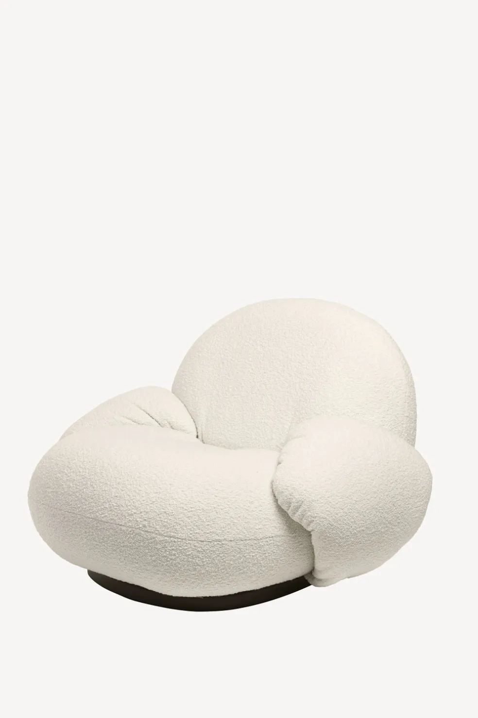 An extremely comfortable design from 1975, the Pacha Lounge Chair is perfect for a TV room, casual entertainment area or formal living room. This version of the lounge chair with armrests provide a bit more support for the upper body. With countless upholstery options, there is room for creativity with this design. It is available either stationary or on a swivel with a black or pearl gold base. Plus, multiple lounge chairs could be pushed together to form a cozy sofa with arm rests either just on the outsides or throughout the middle as well.