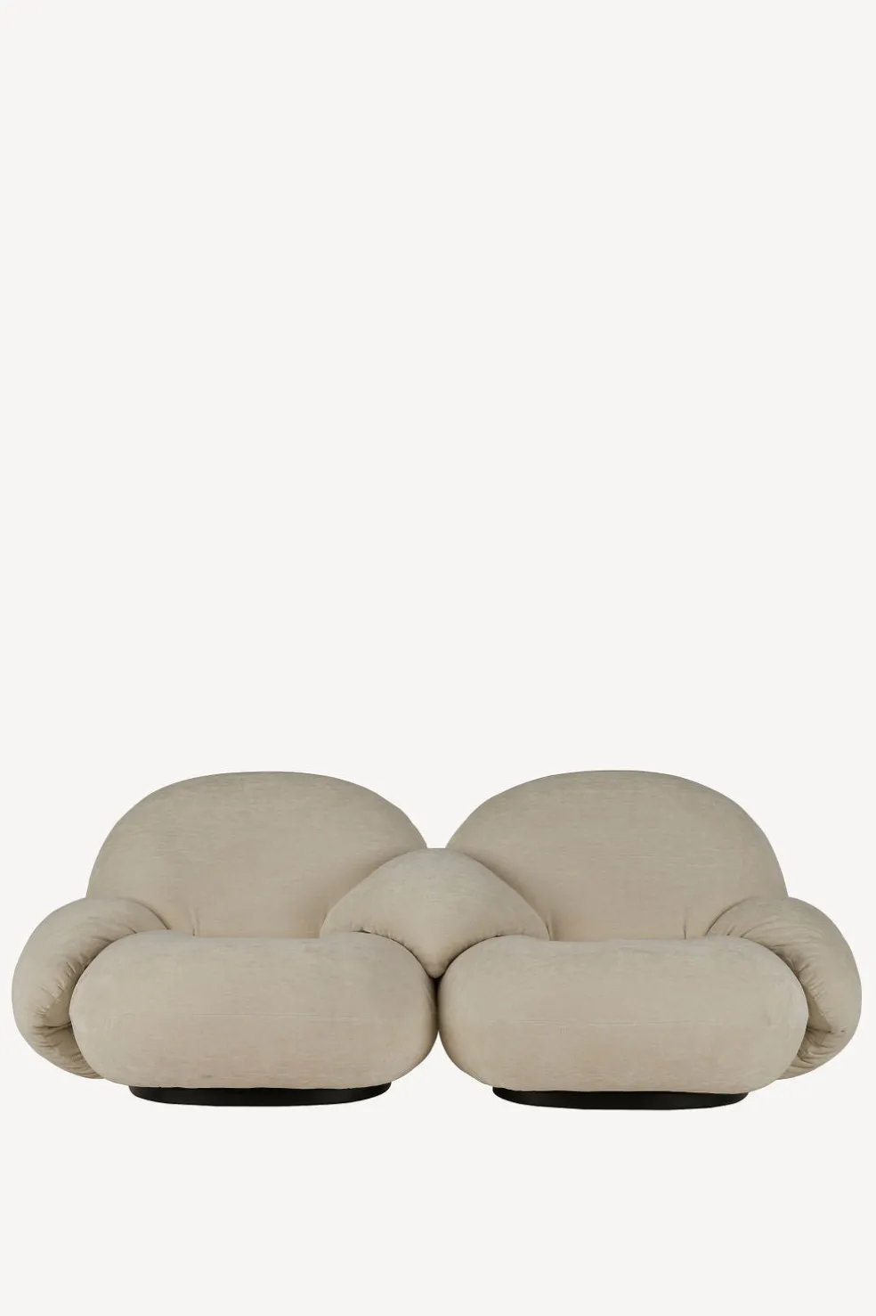 An addition to the original Pacha Lounge Chair, the Pacha Sofa equals three times the coziness! With countless upholstery options, there is room for creativity with this design. It is available with or without armrests, and with the option of no armrests, armrests only on the outside, or armrests on the outside and throughout the middle. The sofa comes in either a 2, 3 or 4-seater with a pearl gold or black base.