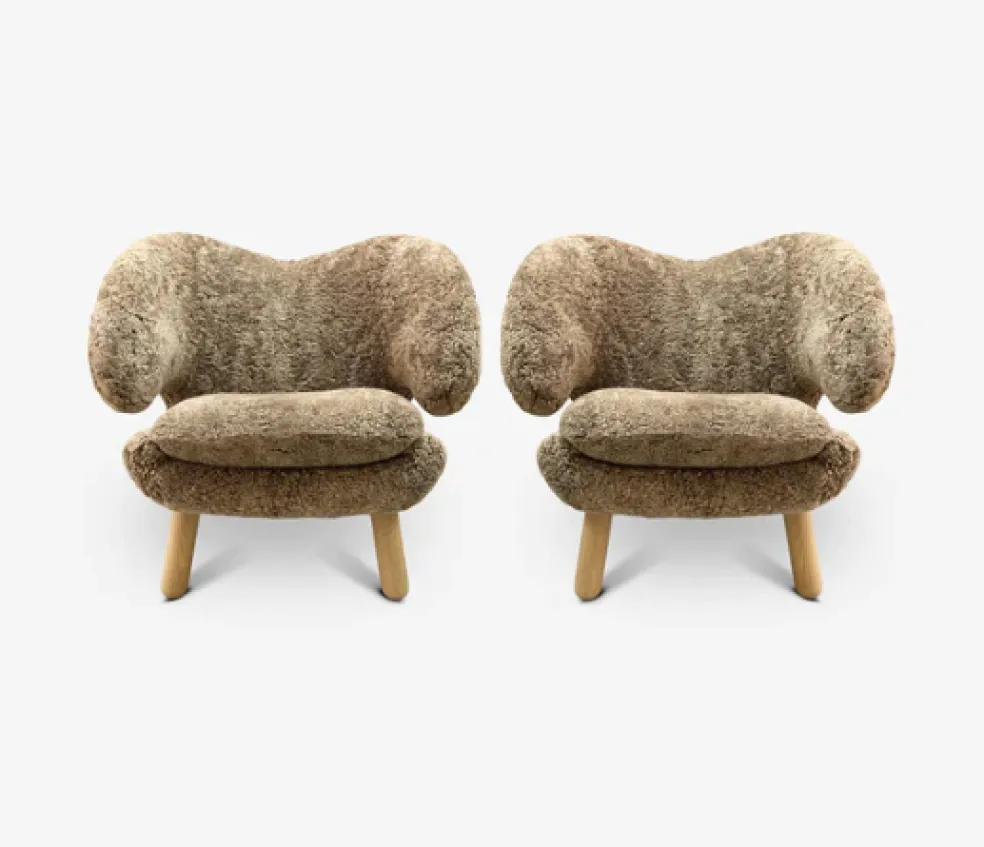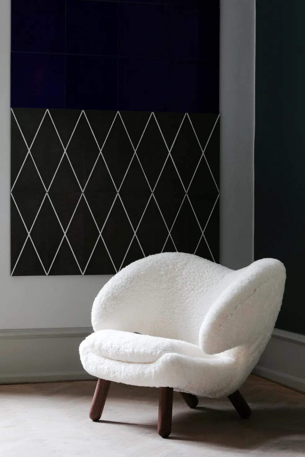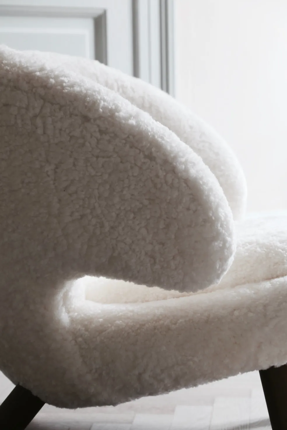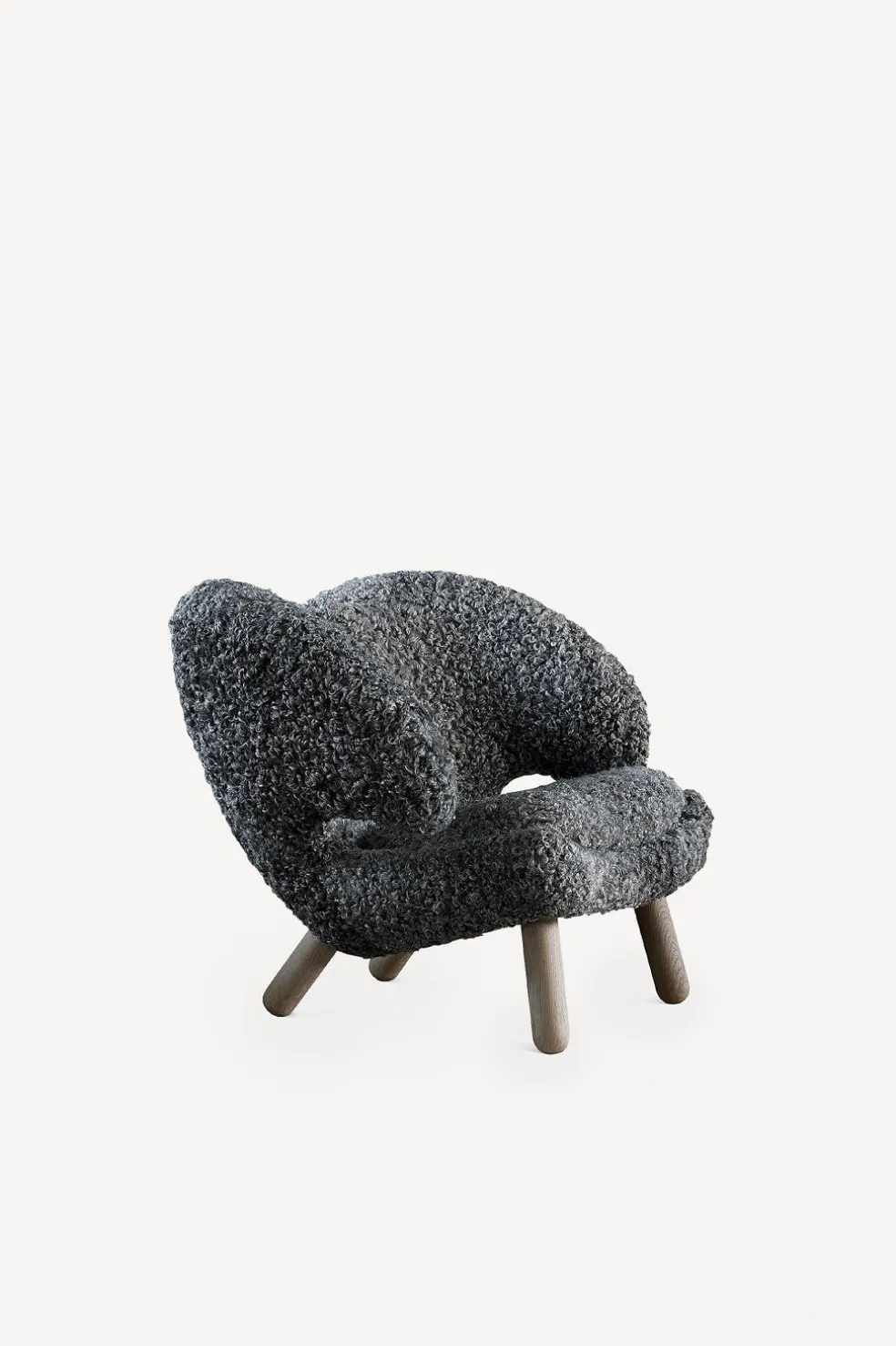 The Pelican Chair is available in many upholstery options, although we highly recommend this chair in the Gotland sheepskin material due to the naturally warm feel of sheepskin that further evokes the feeling of being embraced when sitting. It is available with walnut, oak or black stained legs.