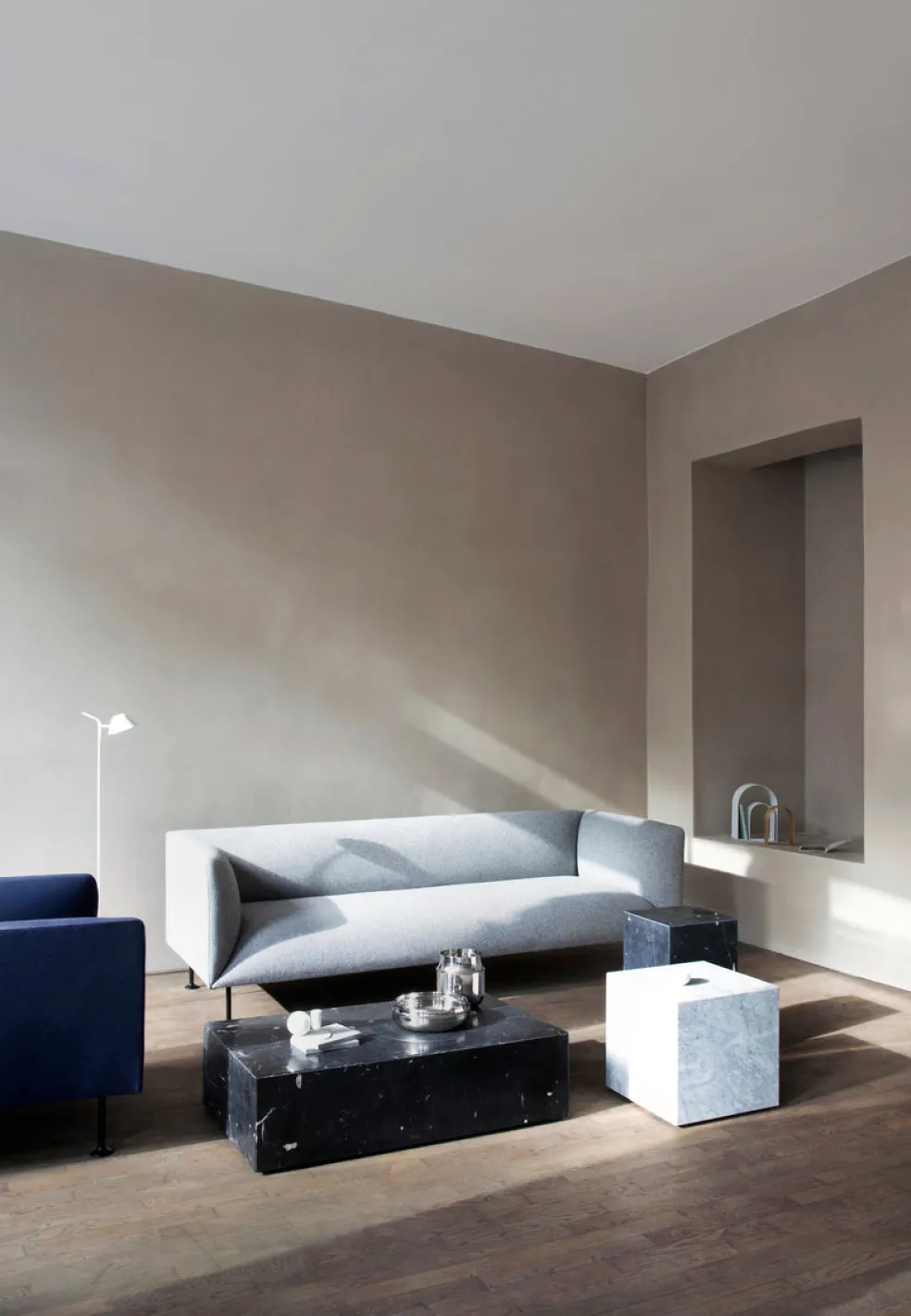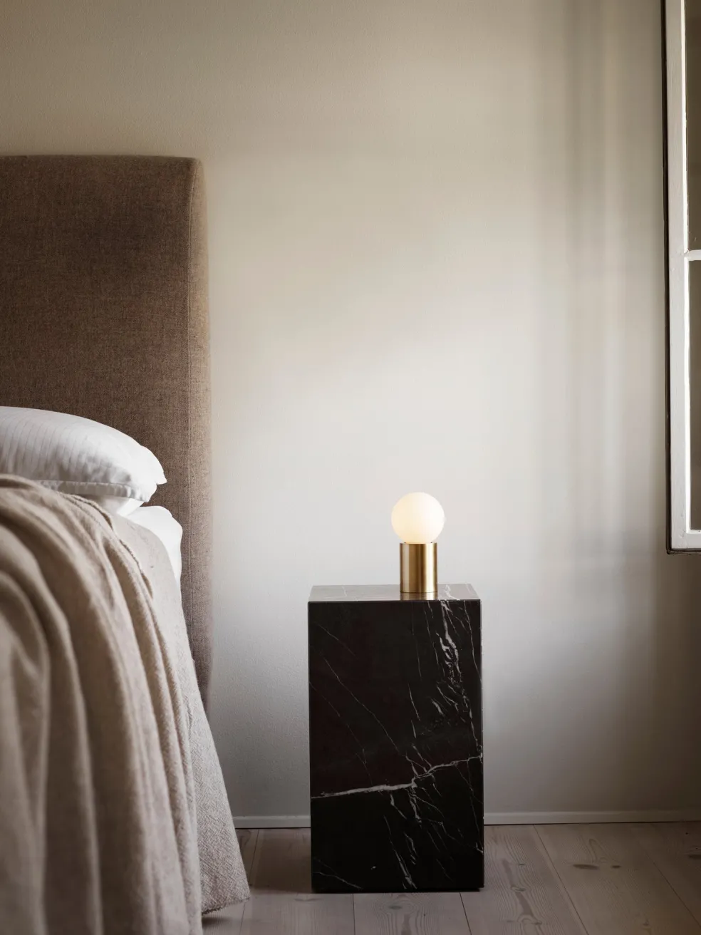Black marble block tables designed by Norm Architects for MENU, Copenhagen. The Plinth table series is modern and sophisticated and pays tribute to the natural beauty of the marble. Use as side tables in a living room, beside your bed or as a coffee table.