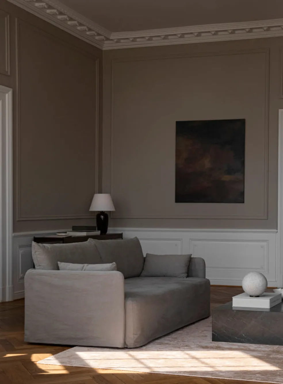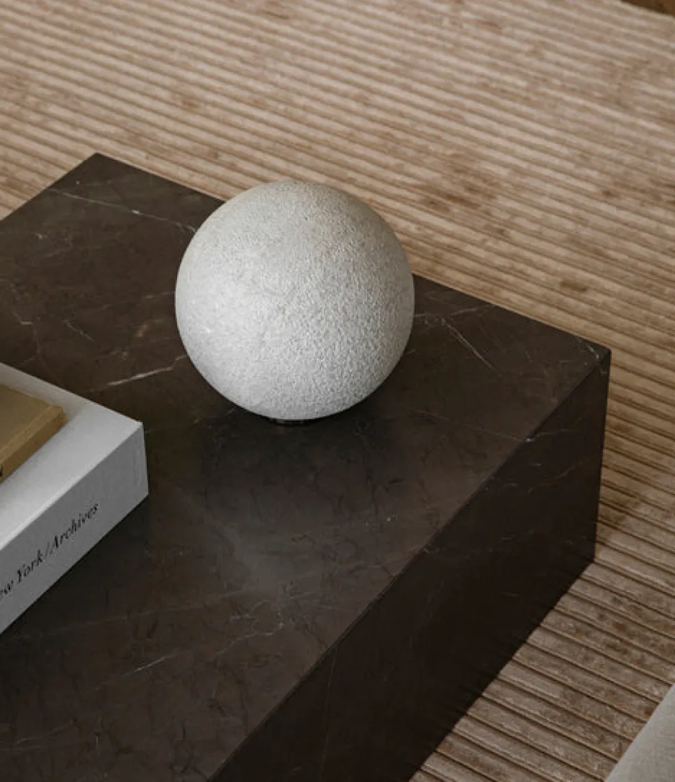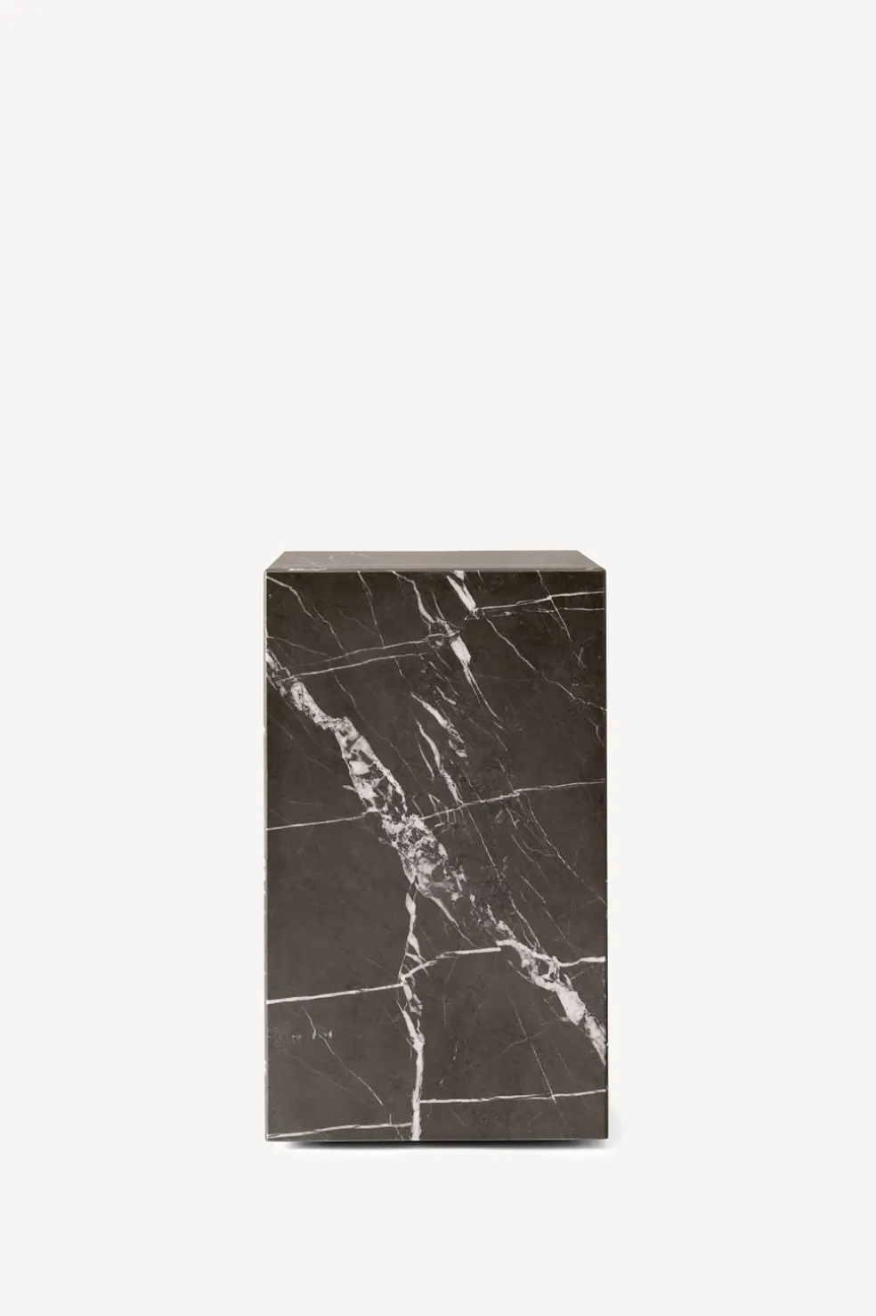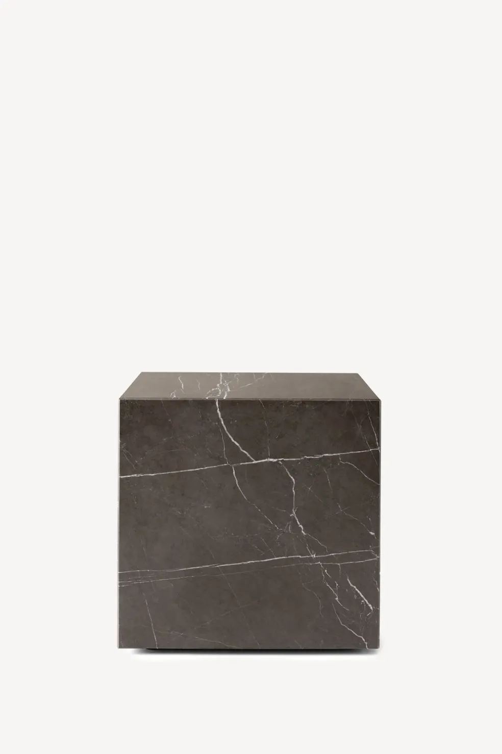 Grey marble block tables designed by Norm Architects for MENU, Copenhagen. The Plinth table series is modern and sophisticated and pays tribute to the natural beauty of the marble. Use as side tables in a living room or beside your bed or as a coffee table.