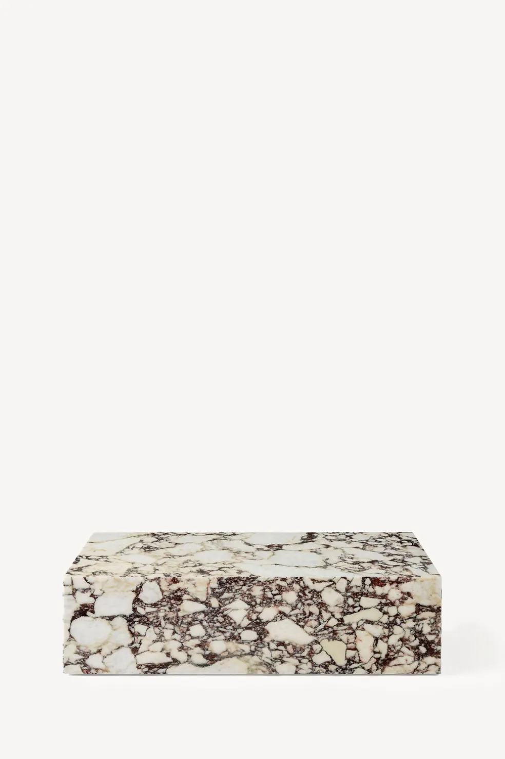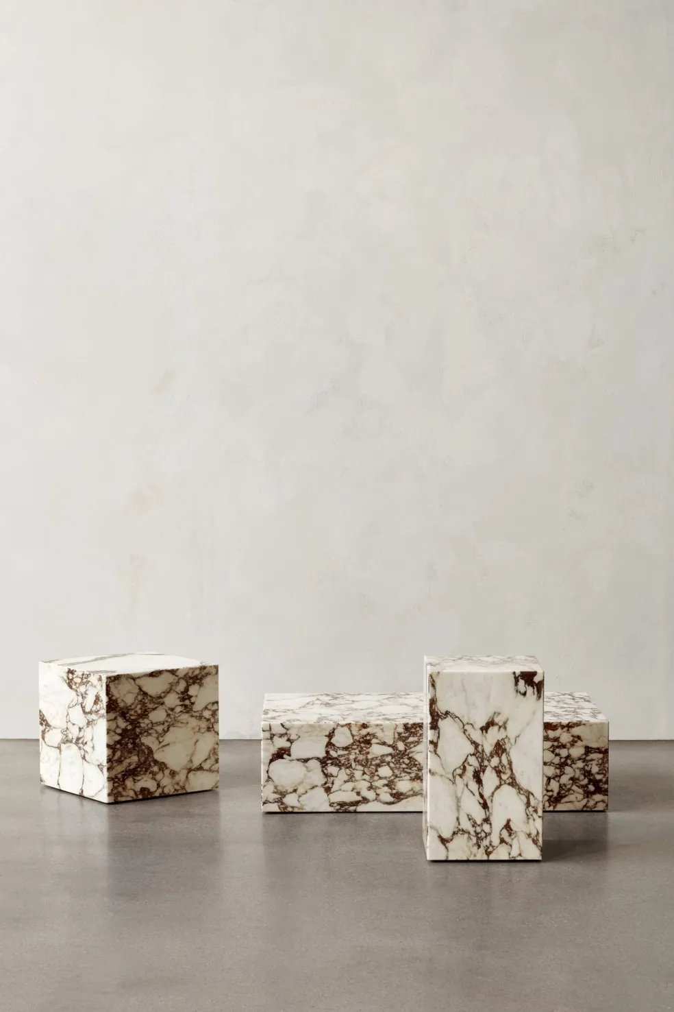 Rose marble block tables designed by Norm Architects for MENU, Copenhagen. The Plinth table series is modern and sophisticated and pays tribute to the natural beauty of the marble. Use as side tables in a living room, beside your bed, or as a coffee table.