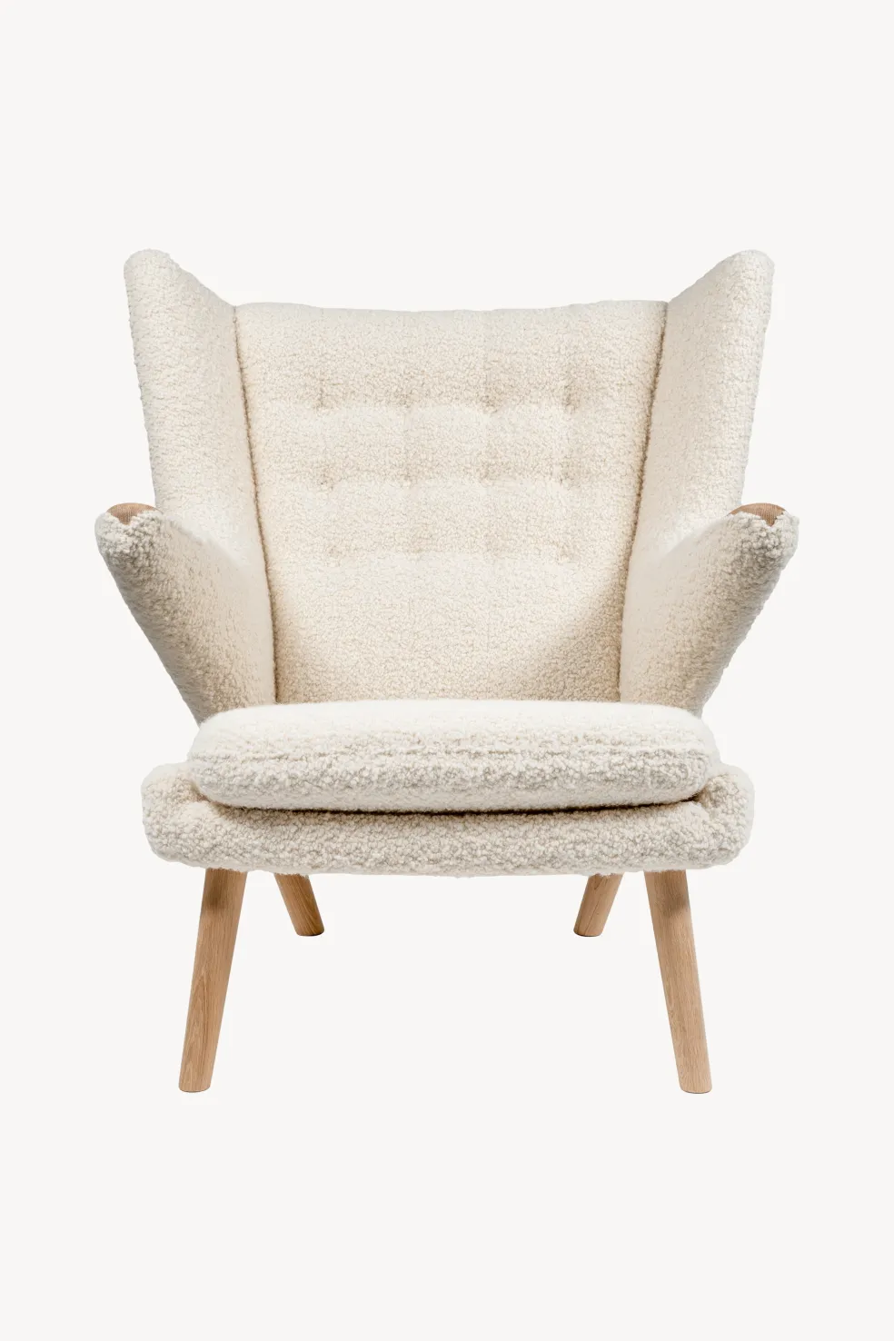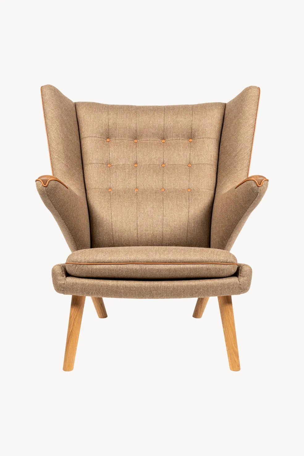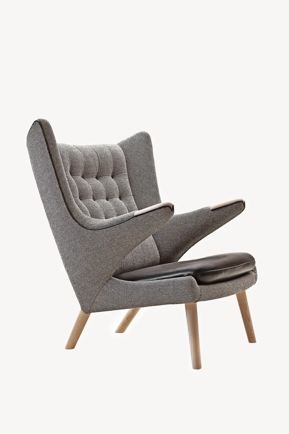 The PP19 Papa Bear Chair, designed by Hans J. Wegner in 1951, has become one of his most iconic and inviting designs, celebrated for its exceptional comfort and sculptural beauty. Handcrafted in Denmark with unparalleled craftsmanship, each chair takes over two weeks to complete. Its solid wood frame, made from sustainably sourced materials, ensures durability, while the distinctive “bear paws” armrests provide both support and a playful, organic aesthetic. Expertly upholstered for ultimate comfort, the high backrest and generous cushioning create the perfect balance of luxury and relaxation. The Papa Bear Chair is an investment for a lifetime of hygge moments.
