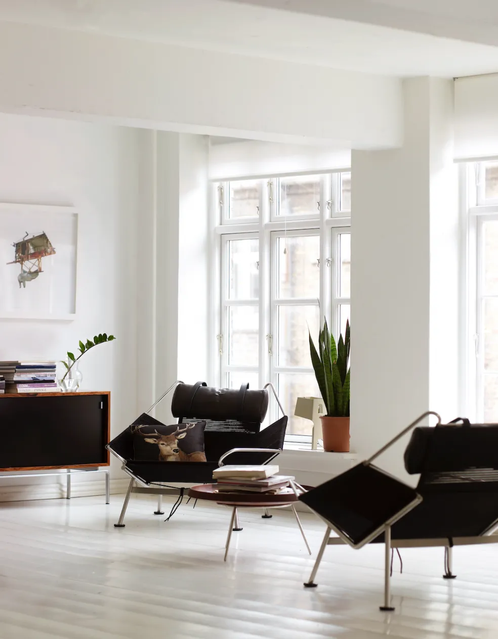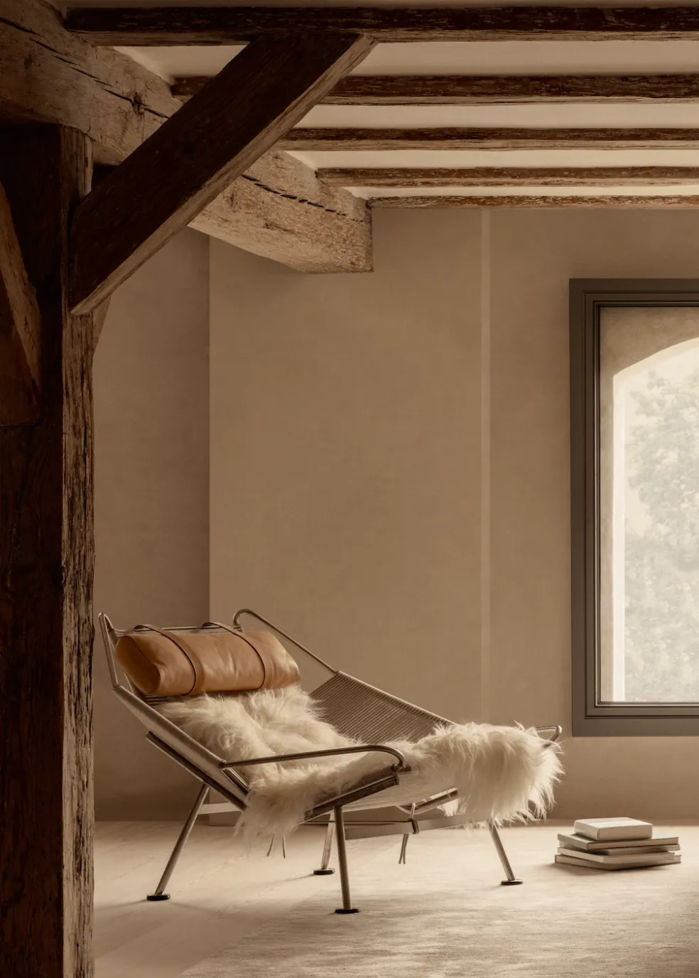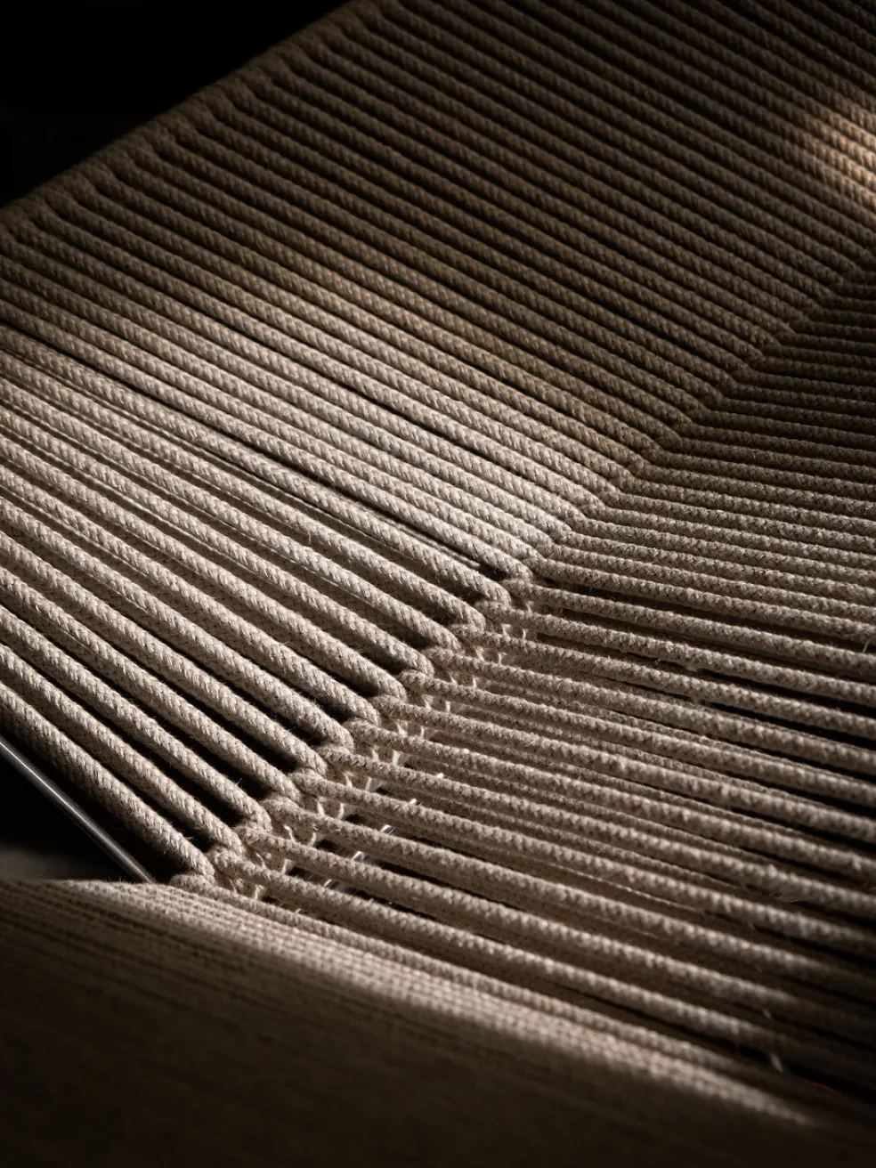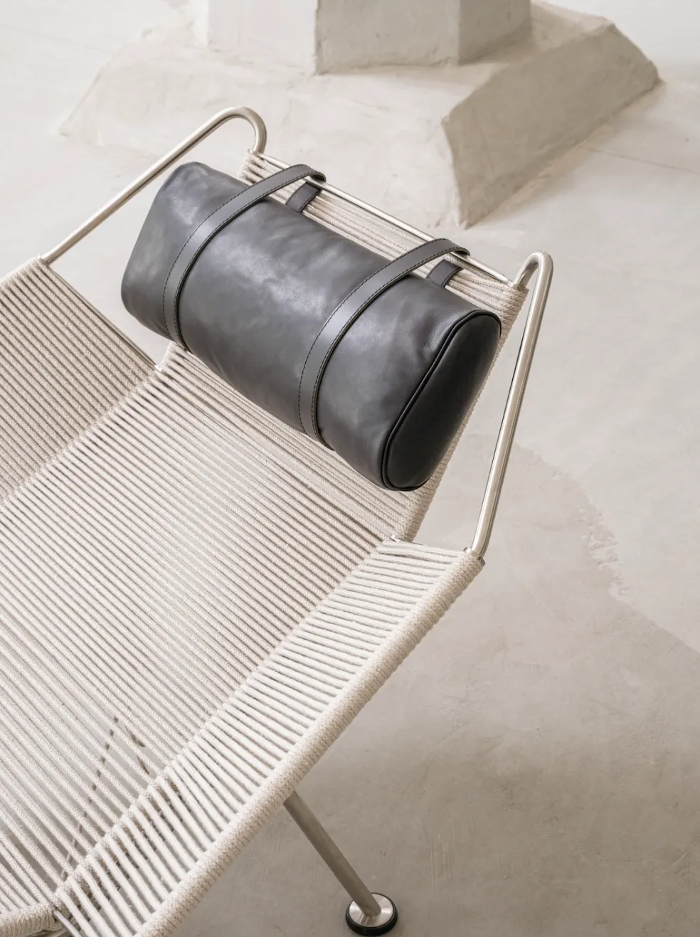 While the Flag Halyard Chair has a wonderfully contemporary aesthetic the original design was conceived by Hans Wegner in 1950. One idyllic Summer afternoon, while the children were playing on the Danish coast, Wenger began to form the concept of this chair right there in the sand. He later went home to sketch out the design of the seating angles he had created on the beach to form the ultimate lounge chair. The Flag Halyard chair showcases a unique design, as the majority of the chair is diligently woven with 240 meters of continuous halyard flag roping, making it as comfortable as it is durable. Available in multiple options and colors, each chair is made with a solid stainless steel frame, a cozy pillow and can be lined with a long-haired sheepskin to soften the industrial sharpness of the steel. The Flag Halyard Chair is the perfect blend of sophistication and comfort.