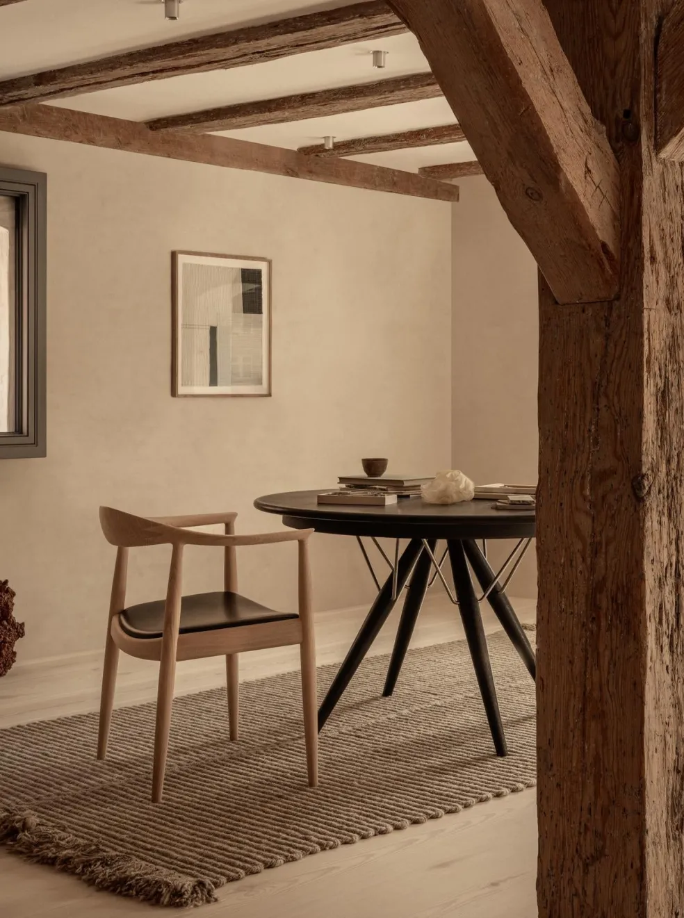 The PP503 Round Chair, designed by Hans J. Wegner in 1949, is a refined variation of the iconic PP501 Round Chair. Often referred to endearingly as “The Chair,” it gained international recognition for its elegant simplicity and exceptional craftsmanship. Handcrafted in Denmark from 200 year old sustainably sourced shelter trees, the Round Chair features a sculpted frame with a seamless, organic flow. The armrest for the Round Chair consists of three pieces each carved out of 5 inch thick solid wood. Unlike the PP501, the PP503 is upholstered, offering enhanced comfort while maintaining the chair’s graceful silhouette. Timeless and versatile, the PP503 Round Chair remains a symbol of refined Scandinavian design and enduring quality.