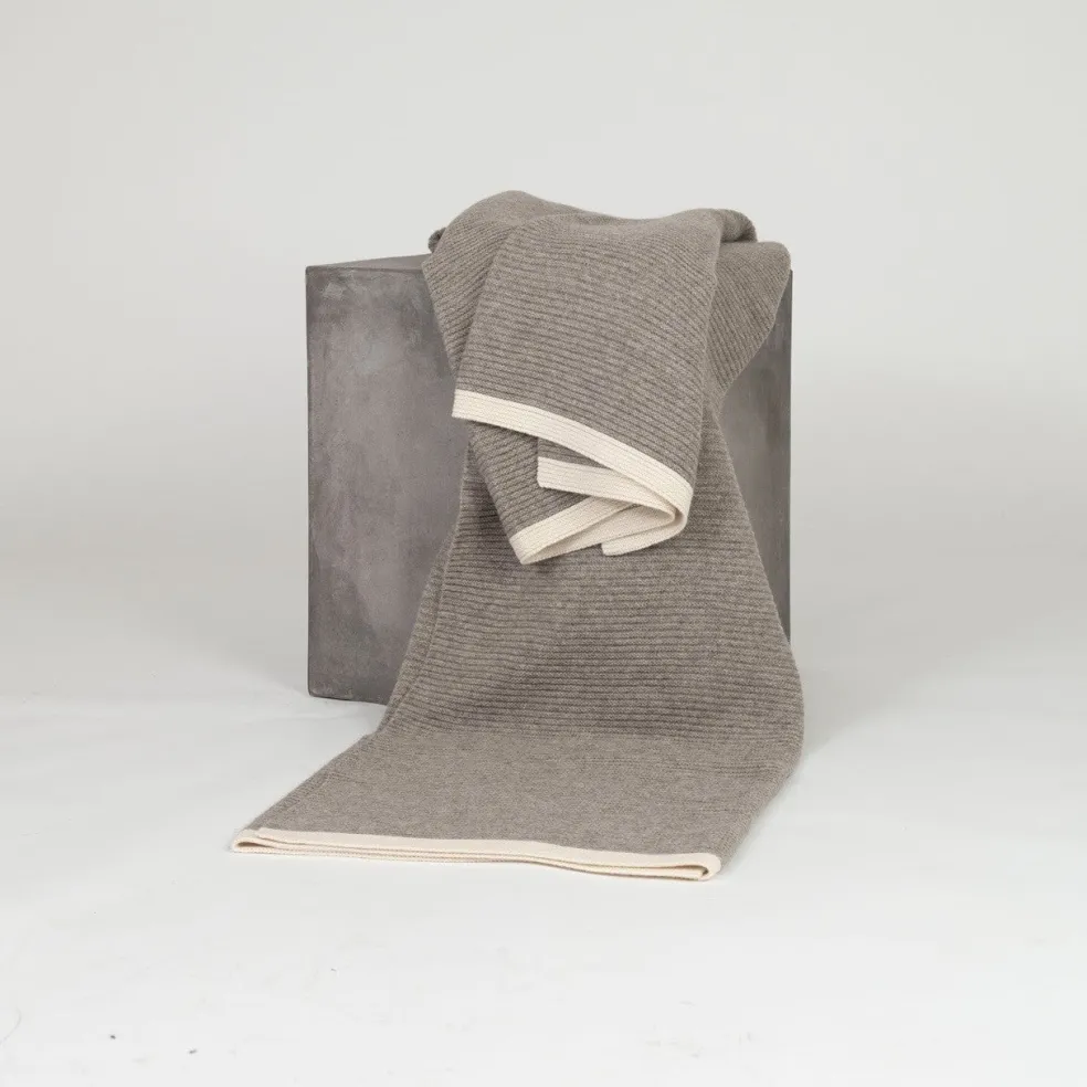 Luxuriously warm throw blanket, crafted from precious yak yarn, is soft, breathable, and naturally water-resistant. Created by Hangai Mountain Textiles in Mongolia, these platinum yak down, ribbed, duo-toned throws compliment any sitting area with elegance and coziness.