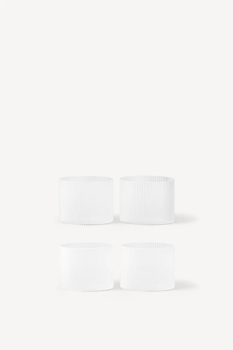 Ripple Water Glasses are a lovely example of moulded and mouth-blown glass. This process of design gives a polished and distinctive appearance with a ripple surface, while showcasing artistic creativity. The Ripple Water Glasses come in a set of four and are offered in clear or smoke hue. This lovely, low profile glassware adds character and charm to any occasion. Pair them with other pieces in the Ripple Glassware collection for a cozy and cohesive dining experience.
