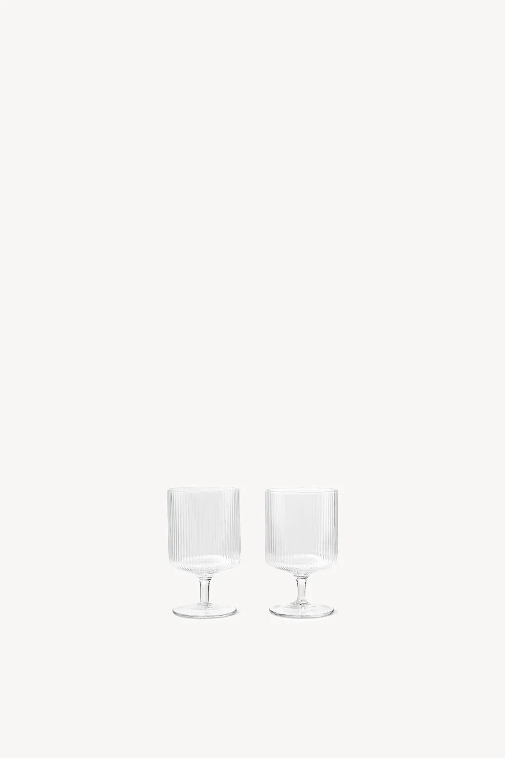 Ripple Wine Glasses are a lovely example of moulded and mouth-blown glass. This process of design gives a polished and distinctive appearance with a ripple surface, while showcasing artistic creativity. The Ripple Wine Glasses come in a set of two and are offered in clear or smoke hue. This lovely, low profile stemware adds character and charm to any occasion. Pair them with other pieces in the Ripple Glassware collection for a cozy and cohesive dining experience.