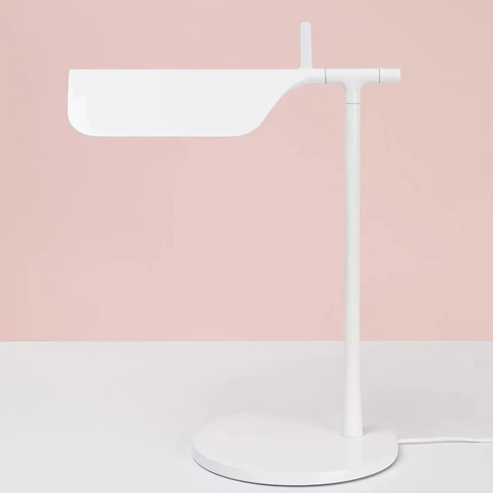 A new edition to the Tab lamp collection, created by designers E. Barber and J. Osgerby. This unique lamp provides a bold, modern look while pushing the limits of innovation with its functionality. The Tab LED Rotatable Table Lamp boasts an adjustable head that rotates a full 90-degrees to provide the perfect amount of light for a desk, bedside or table. While its LED diffuser was created to avoid a multi-shadow effect for a more direct light-source.