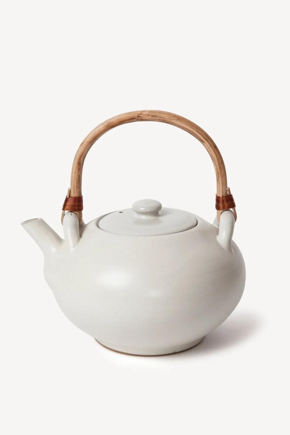 This beautiful, handmade teapot is crafted from mineral-rich clay by seasoned artisans of a fair-trade women’s empowerment group in Nepal. Product of Sukha, Amsterdam. Steep your favorite tea directly in this teapot and safely transport it around the house with the wire-wrapped wooden handle.