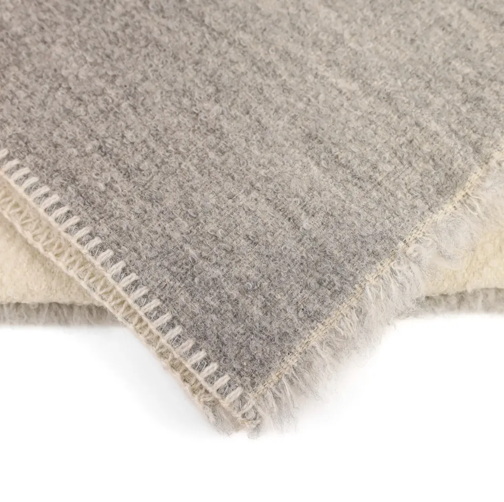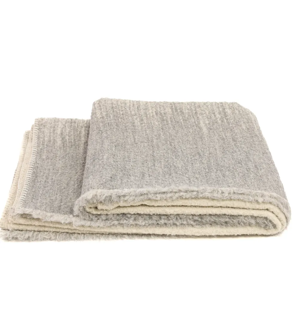 A fun design, this blanket is reversible, and its pattern switches colors from inside to out when flipped back and forth. It features an ombré design that is beautifully eye-catching both when neatly folded and spread out. It is the epitome of warmth and comfort made from mostly all natural alpaca wool.