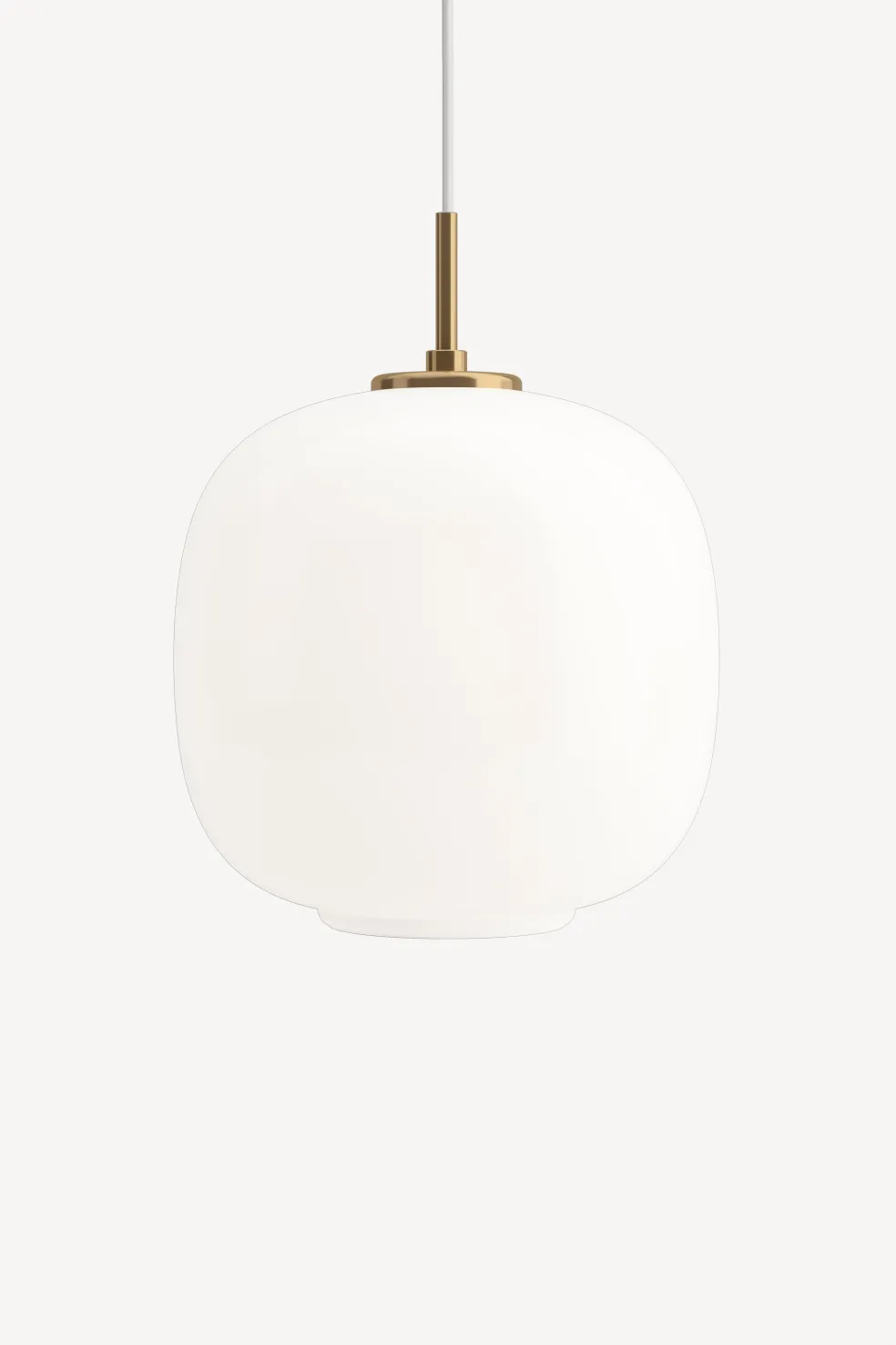 The Louis Poulsen Radiohus Pendant, designed by Vilhelm Lauritzen in the 1940s for Copenhagen’s Radiohuset building, is a timeless example of Danish modern lighting. Its hand-blown, three-layer opal glass shade emits soft, even illumination, while the brushed brass suspension adds a warm, refined touch.The open bottom provides direct downward light, making it ideal for dining areas, living spaces, or entryways. This pendant blends classic elegance with functional design, enhancing both contemporary and traditional interiors.