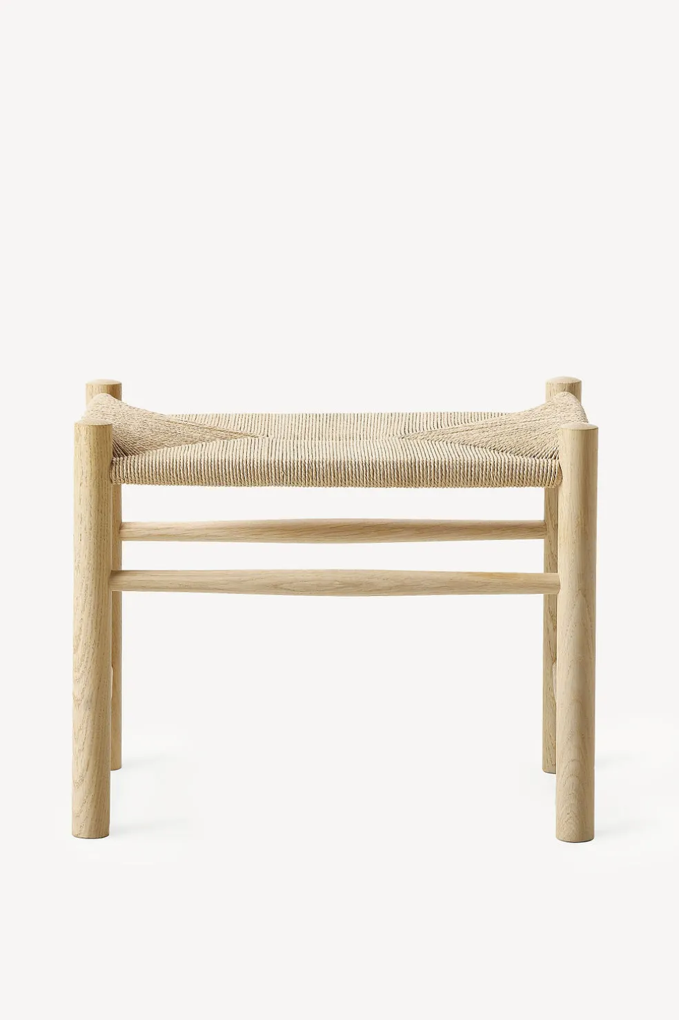 Featuring natural paper cord and a solid oak or walnut frame, this piece doubles as a footstool to be placed in front of a lounge chair or a sturdy seat all on its own. Perfect for a living room, vanity or master closet, the versatility is endless. This stool is also one of Hans J. Wegner’s most recognized designs, cherished as the quintessential Danish furniture style.