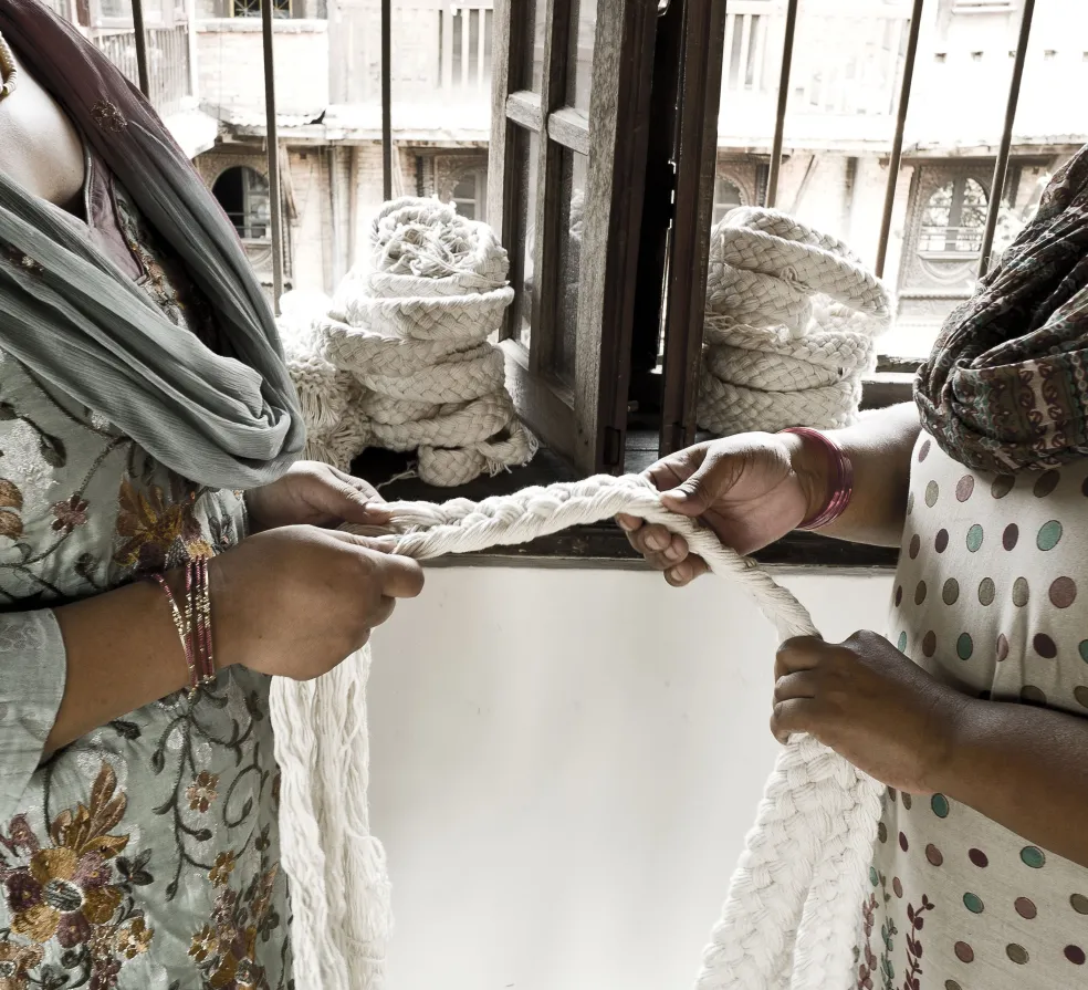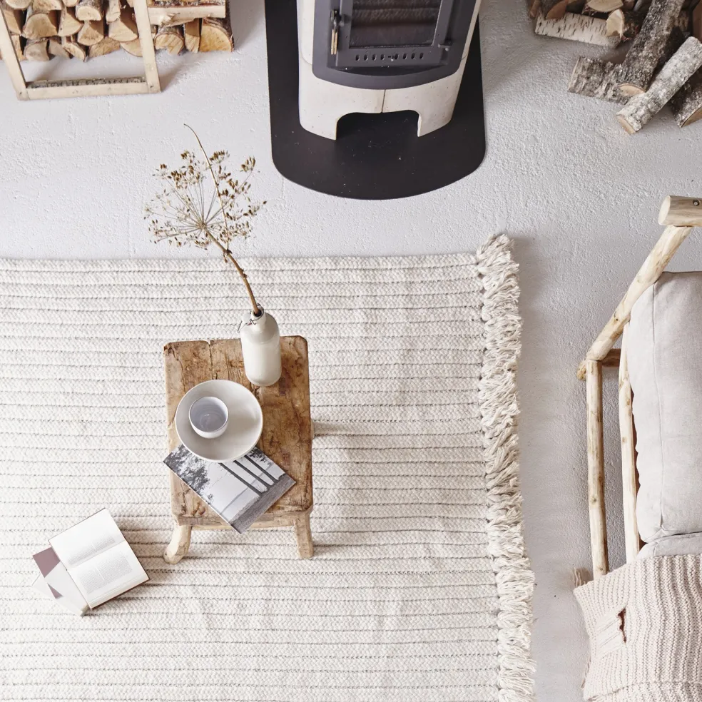 A gorgeous heavyweight 100% Tibetan Chulto wool rug hand-braided in Nepal. Handmade by female artisans of a fair-trade women’s empowerment group and designed by Atelier Sukha in Amsterdam. Place indoors, on the patio, or lay on grass or sand as a picnic blanket!