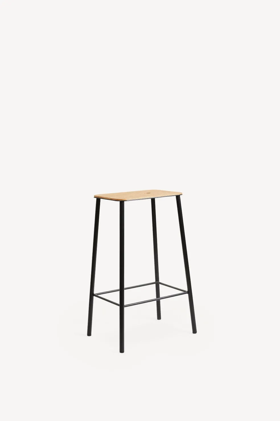 A classic industrial Danish design, this Adam Stool combines the natural materials of oak wood and black steel. This handsome design by Toke Lauridsen works well in both classic and contemporary interiors and is a timeless piece that will last forever. The handle in the middle of the stool makes it easy to move around as needed, and footrests built into the legs create comfort so one may sit for long amounts of time.