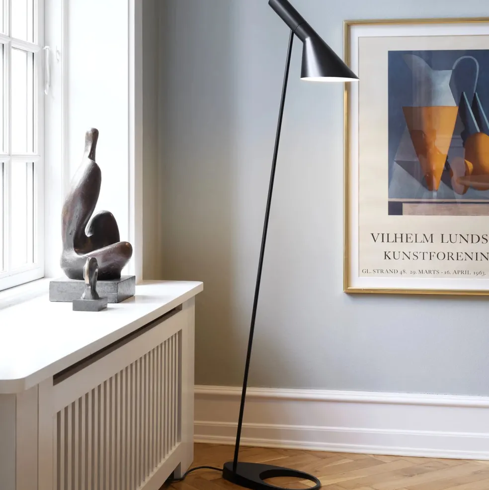 The Louis Poulsen AJ Floor Lamp, designed by Arne Jacobsen in 1957, is a design icon known for its sleek, sculptural form and precise, glare-free lighting. This elegant light creates a cozy and inviting atmosphere, making it the perfect addition to any hygge-inspired space.