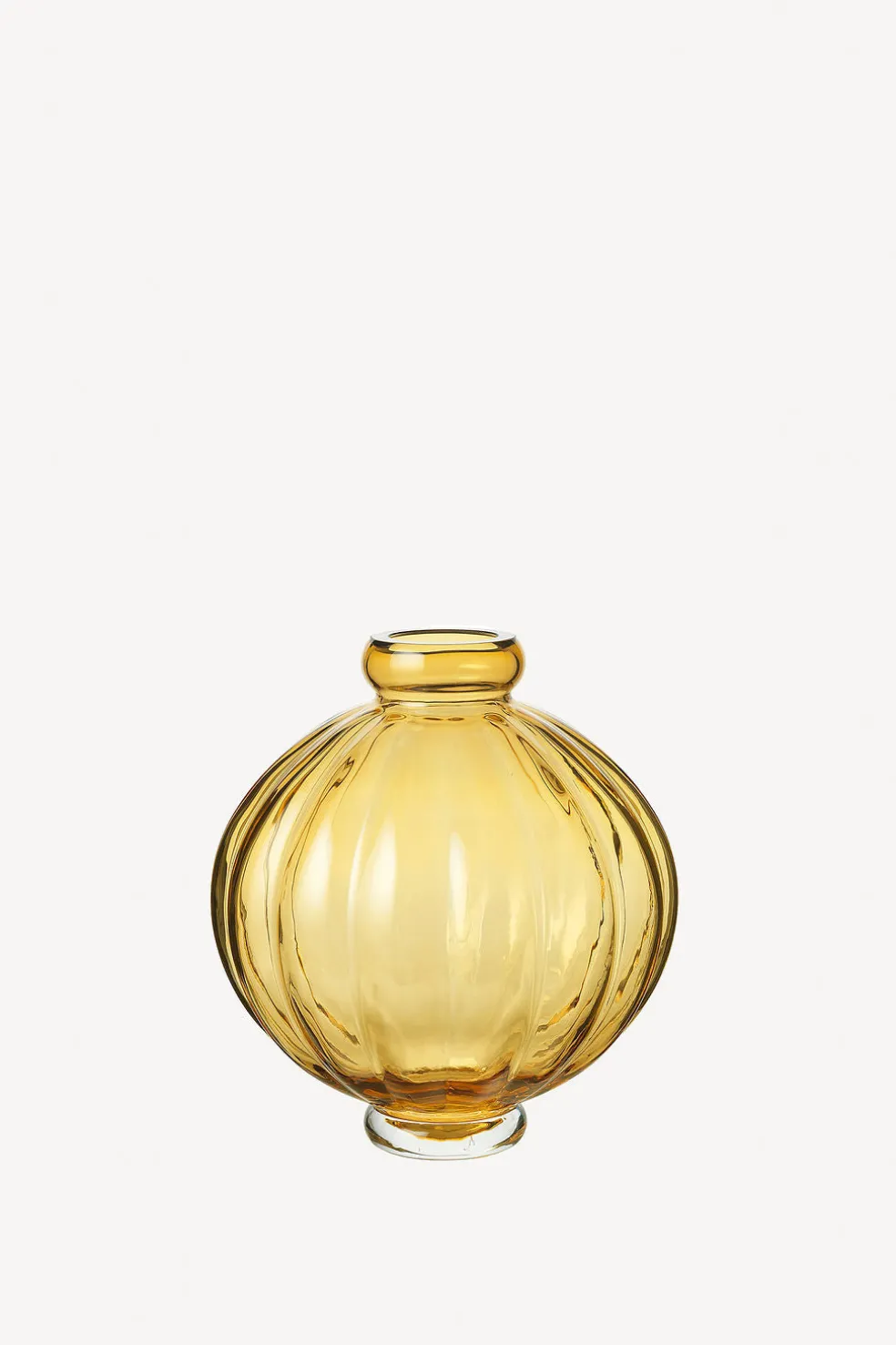 The amber Balloon Vase 01 is made from mouth blown glass in Europe, which gives its characteristic round shape and playful curves. As a small sculpture, this vase works perfectly with or without flowers.