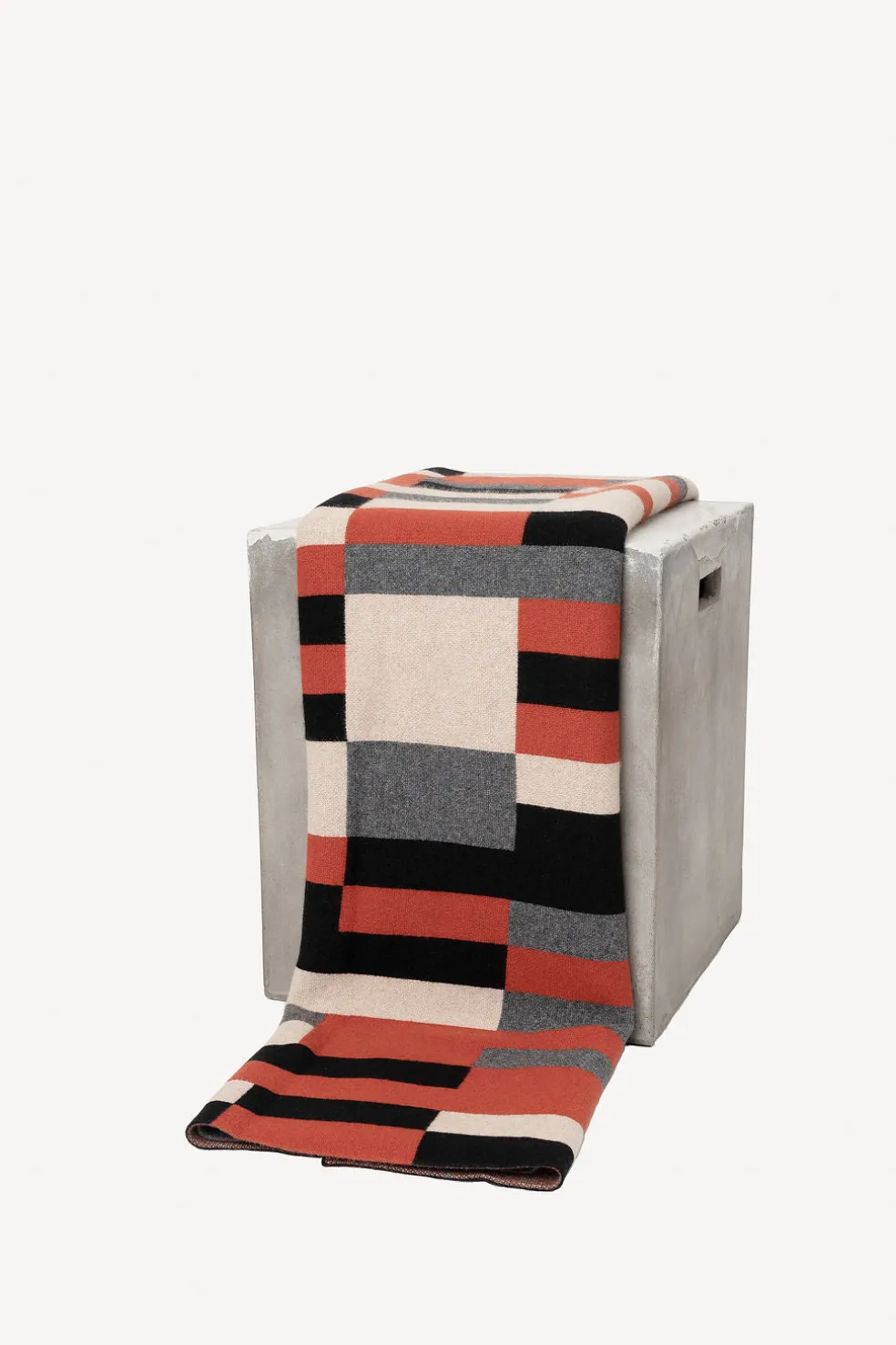 Luxuriously soft throw blanket, crafted from precious Mongolian cashmere goat fiber, is warm, breathable, and beautiful. Created by Hangai Mountain Textiles in Mongolia, these exquisite cashmere throws in a geometrical bauhaus design compliment any sitting area with elegance and coziness.