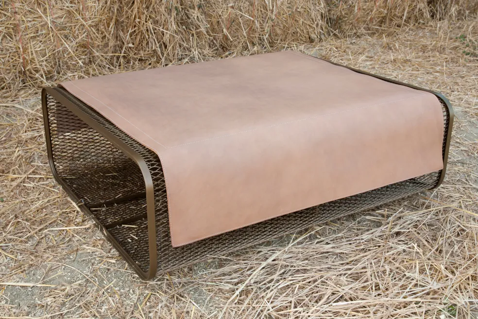 This unique table is artfully crafted in steel mesh with a bronze finish and a leather cover, similar to the saddle of a horse. Use this piece as a coffee table or extra seating in your living or family room area, depending on what your needs may be. The seat cover is available in many fun leather colors, and allows room for you to be creative with a neutral brown tone or a statement pop of red!