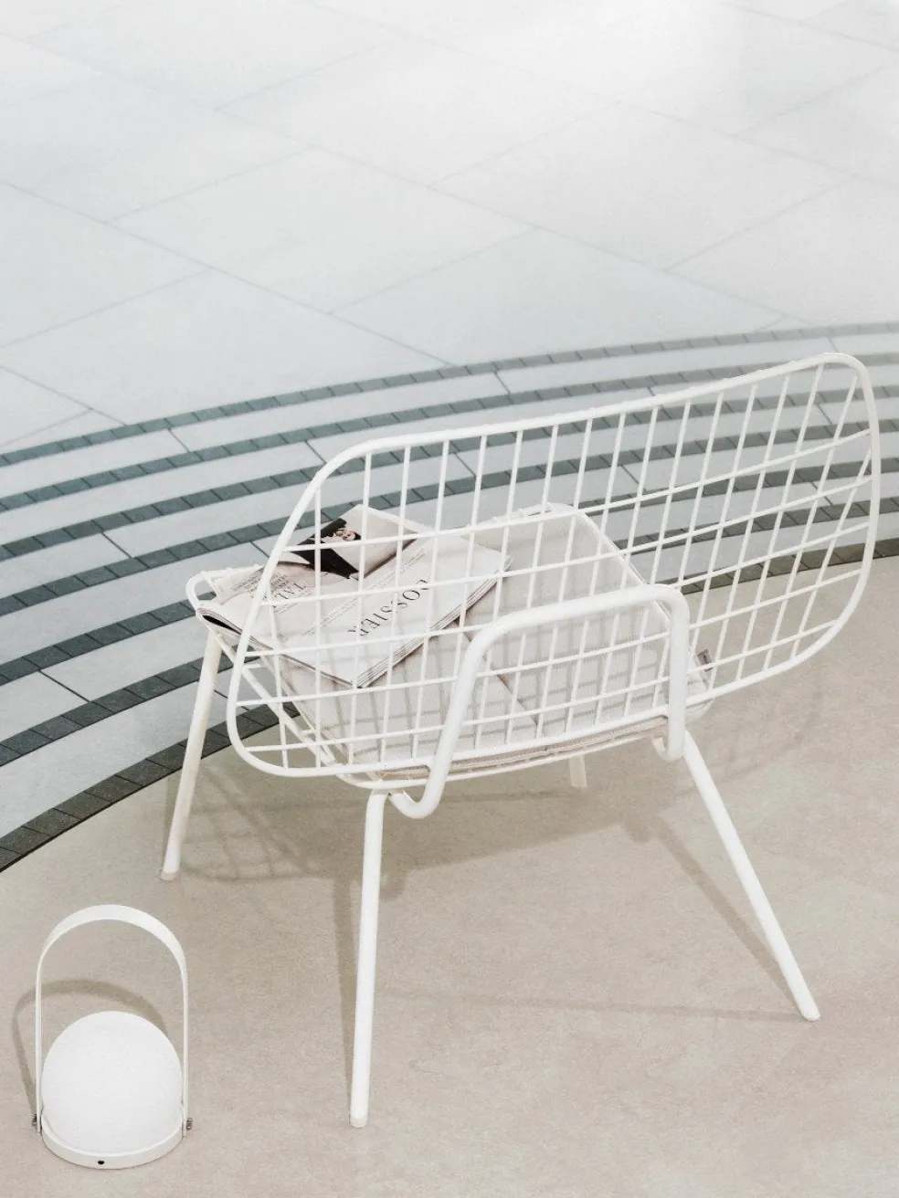 Carry this lamp by its sleek handle from your office, to your bedside, or to an evening picnic. Designed in Copenhagen by Norm Architects for MENU.