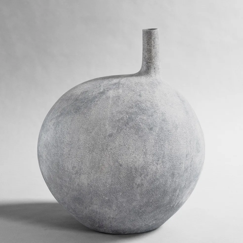 The Small Submarine Vase, a piece in a 101 Copenhagen series of artfully curated, sculptural ceramic objects based on archetypal geometry, is timelessly gorgeous with its spherical, yet asymmetrically round silhouette.