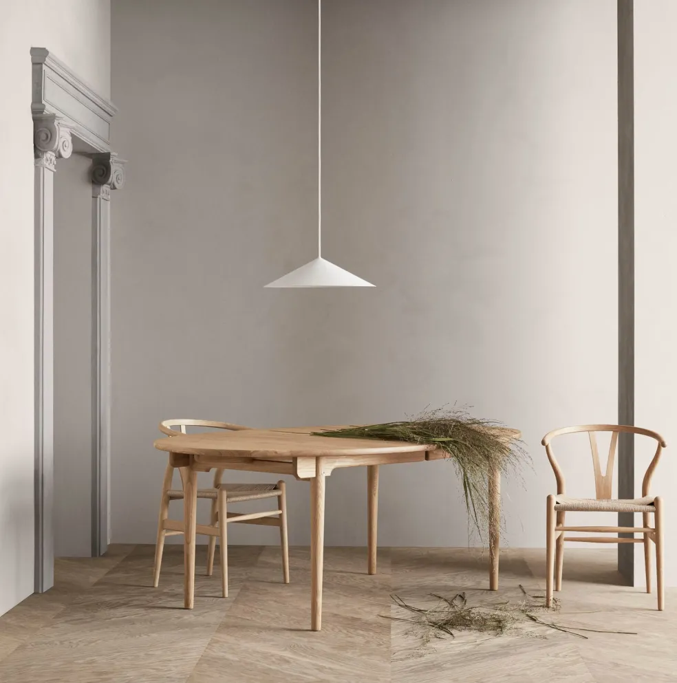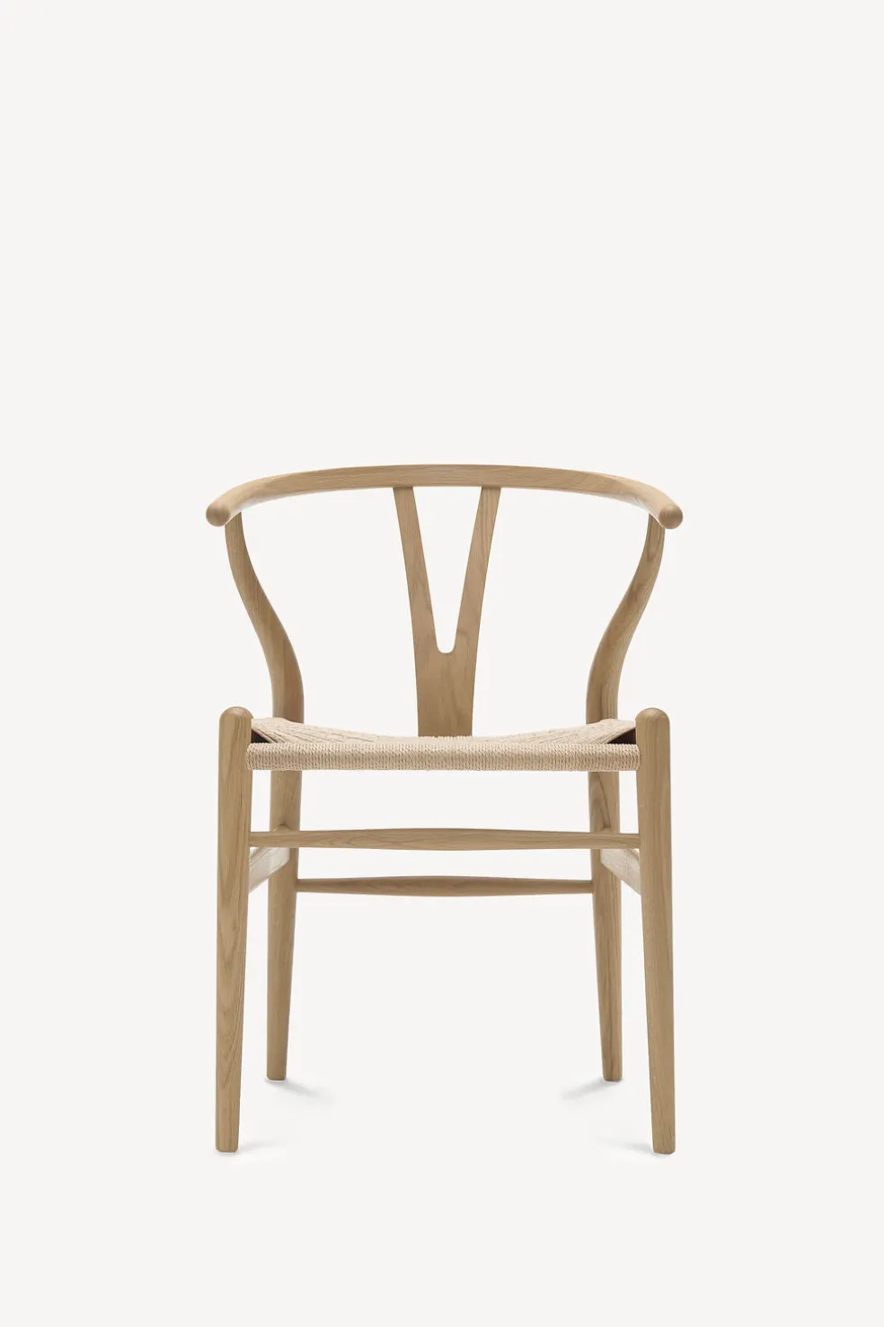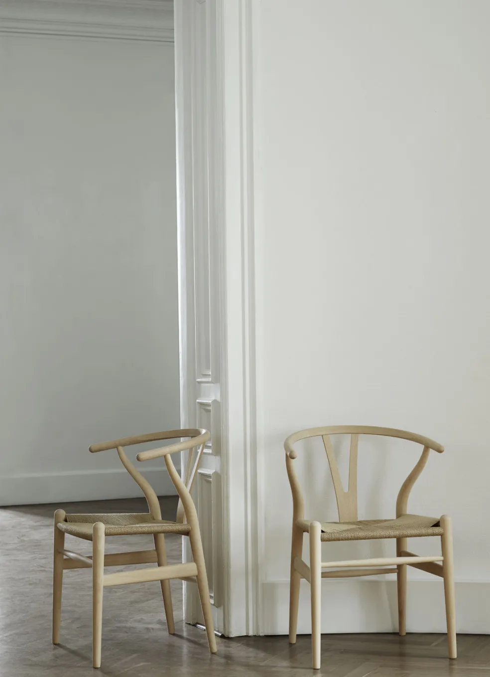 When designing the Wishbone Chair in 1949, Wegner chose to combine the back and armrest into a single piece in order to create stability and comfortable support of the lower back. More than 100 steps are required to manufacture each chair, most of which are carried out by skilled artisans by hand.